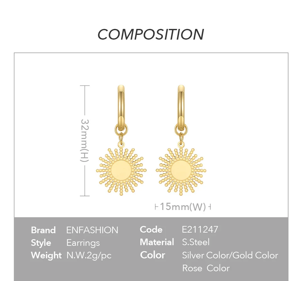 Классические висячие серьги ENFASHION от солнца для женщин, висячие серьги, модные ювелирные изделия, золотой цвет, серьги из нержавеющей стали в подарок E211247