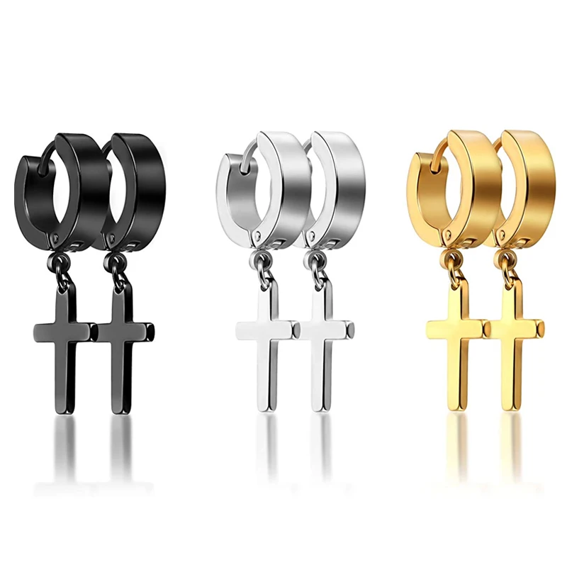 1 шт. Для мужчин крест звезды серьги-подвески в стиле панк женские готские сапоги Нержавеющаясталь крест серьги-кольцо Huggies кулон пирсинг ювелирные изделия
