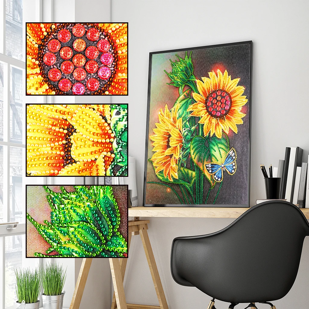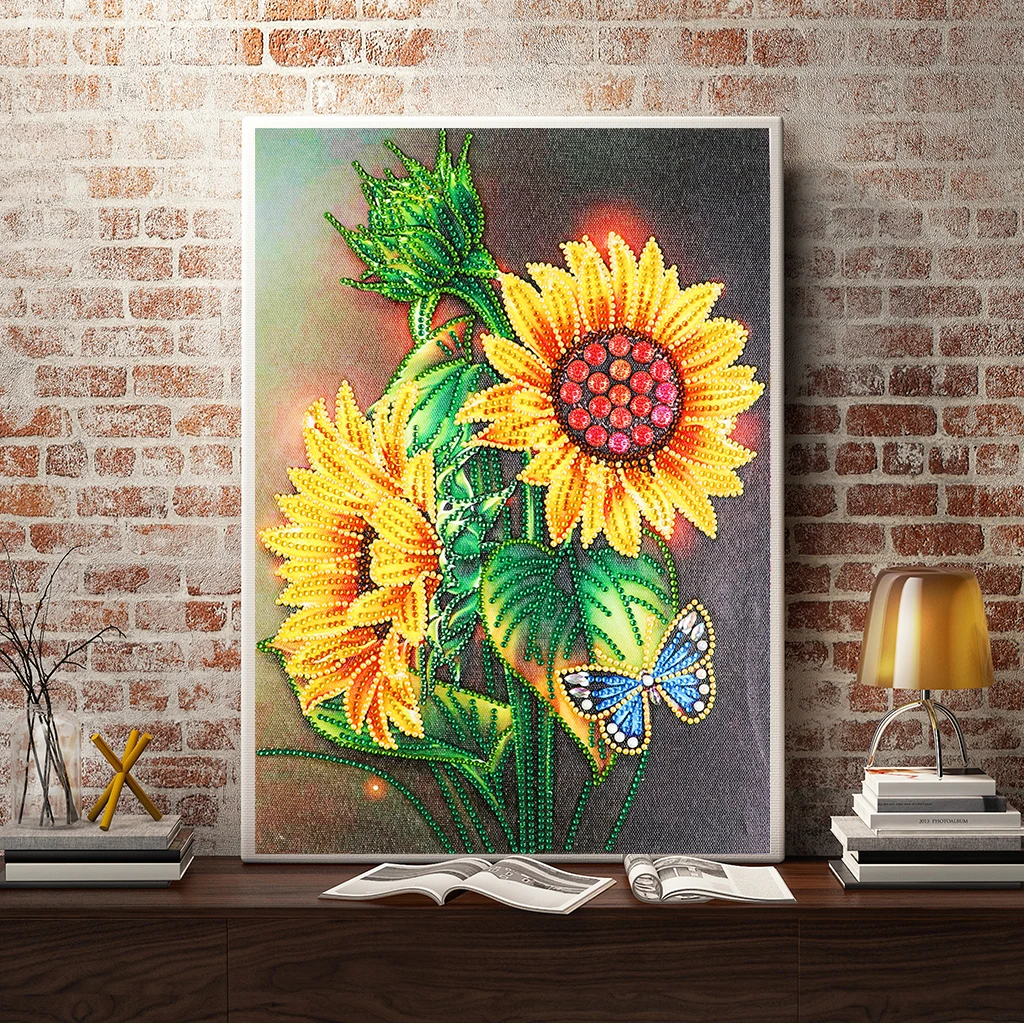 Набор для алмазной вышивки цветы, картина 5D сделай сам в форме подсолнуха, мозаика из страз, домашнее украшение