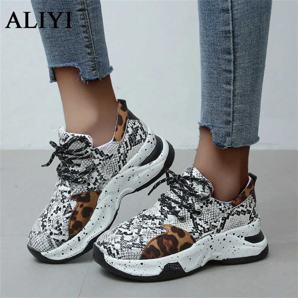 Женские модные кроссовки 2021 цвета; Сезон осень; На шнуровке со шнуровкой с леопардовым принтом светильник, женские кроссовки, спортивная обувь; Большие размеры 35-43 и выше, Larged-Размеры мягкой плоской подошве; Женская обувь на плоской подошве