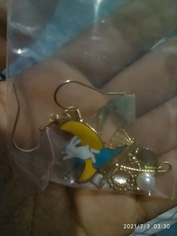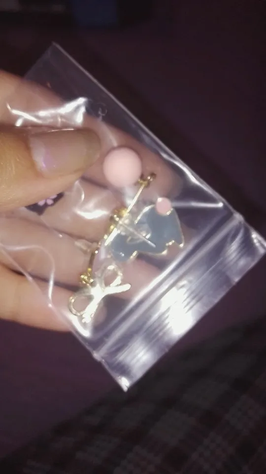 Серёжки очень классные, довольна прикольные. Но всё же одна серёжка пострадала, она оторвалась от гвоздика. Так что при пользовании сережек нужно быть аккуратнее.