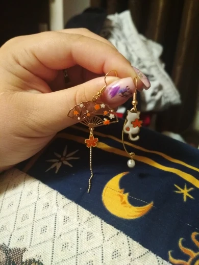 Очень красивые асимметричные серьги. Они выглядят нежно. Быстрая доставка.