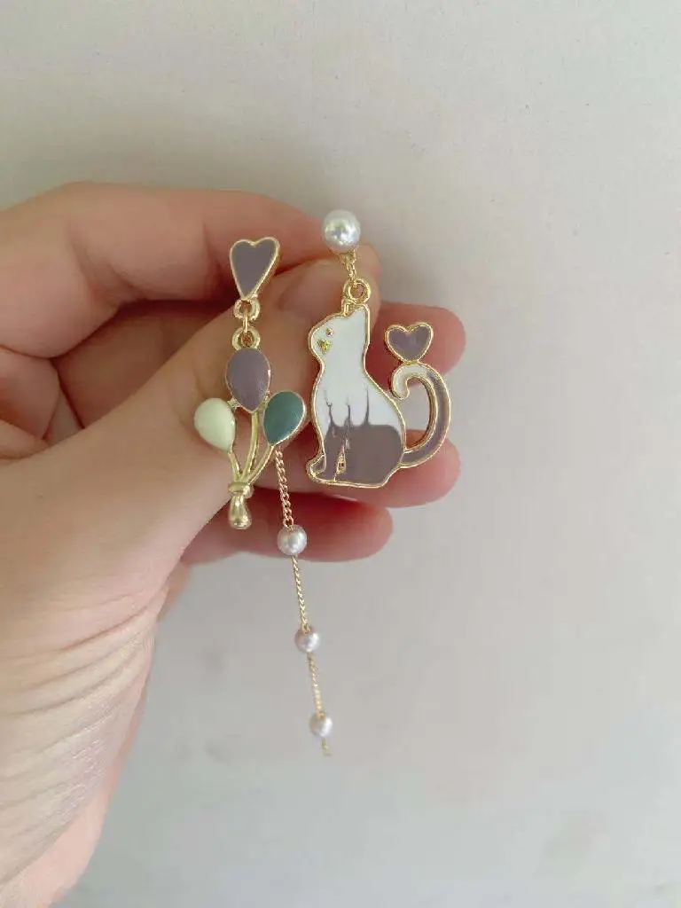 Серьги-подвески женские, с Луной, звездами, котенком, Кроликом, воздушным шаром, асимметричные, цветок в Корейском стиле, вечерние серьги