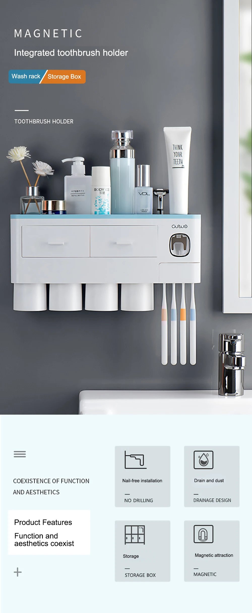 Магнитно-адсорбционный перевернутый держатель для зубных щеток Авто...