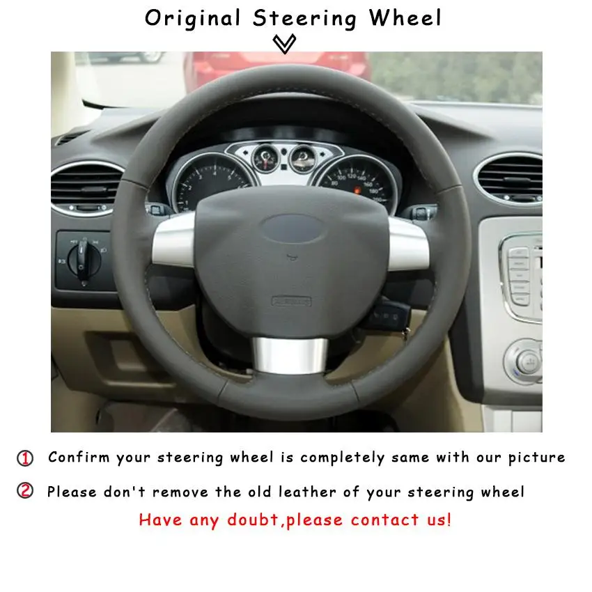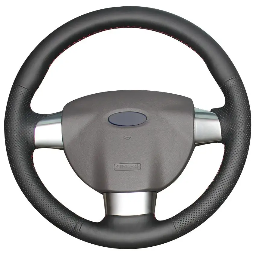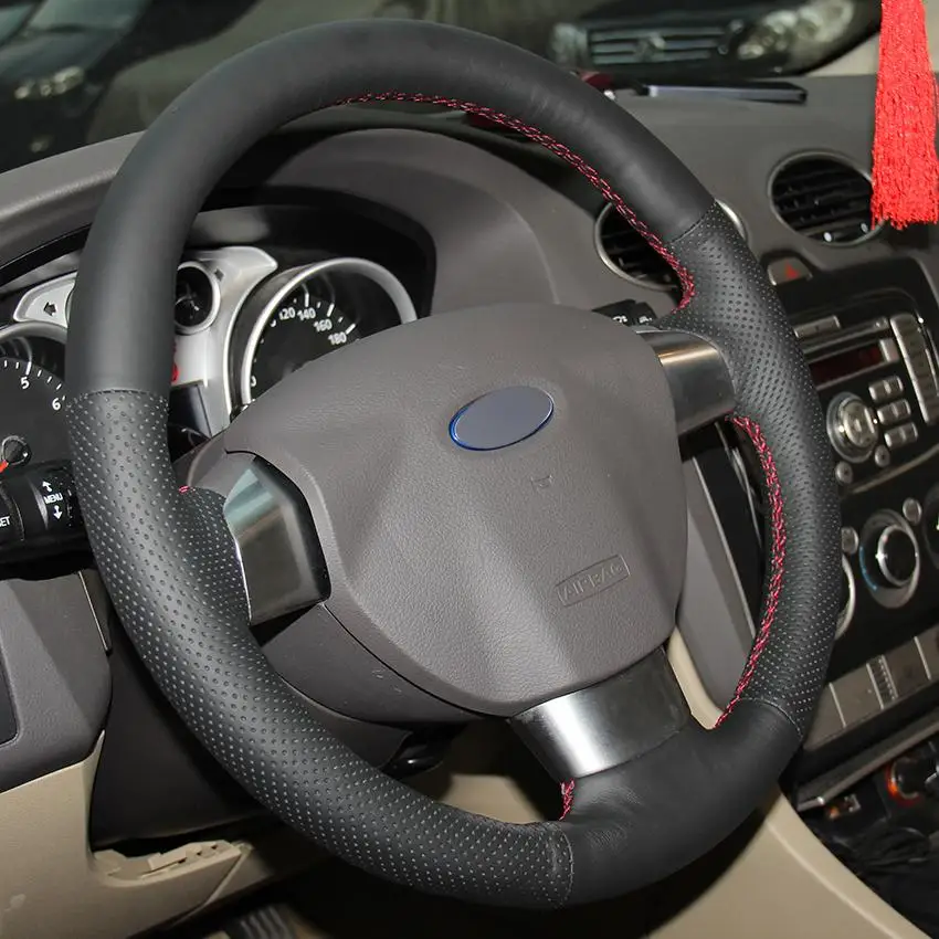 DIY по индивидуальному заказу плетение черный натуральный кожаный чехол рулевого колеса автомобиля для Ford Focus 2 2005 -2011 (3-спица)