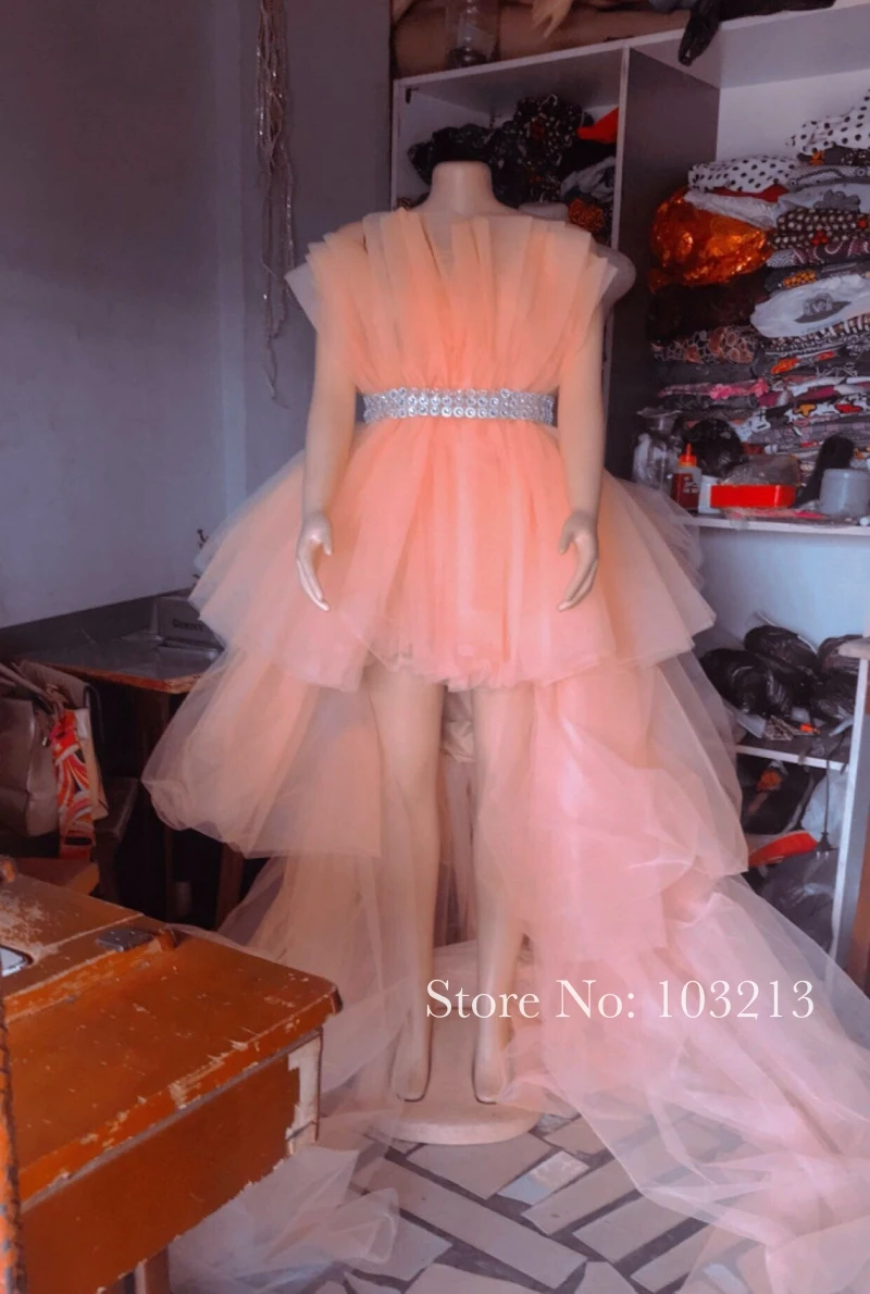 Коктейльные платья, короткие, спереди, Длинные Сзади, 2021, розовое Тюлевое платье для выпускного вечера, с поясом с бисером, для девочек, вечерние платья