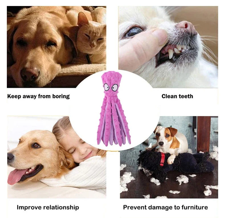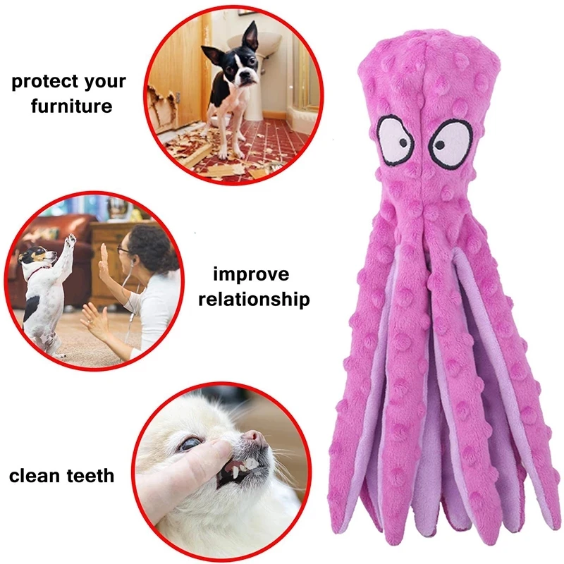 Плюшевый осьминог, 8 лапок, для маленьких и больших собак, чихуахуа, бульдога, мопса, Интерактивная игрушка, пищащая игрушка, аксессуары для домашних животных
