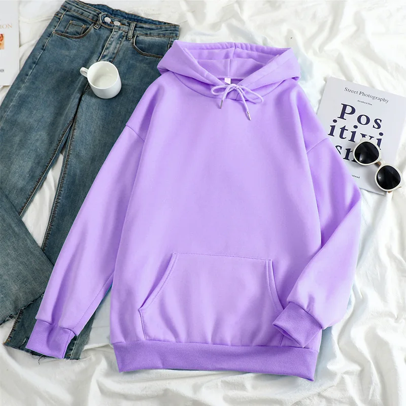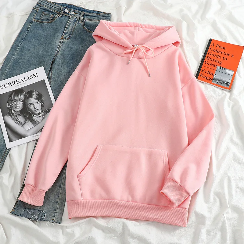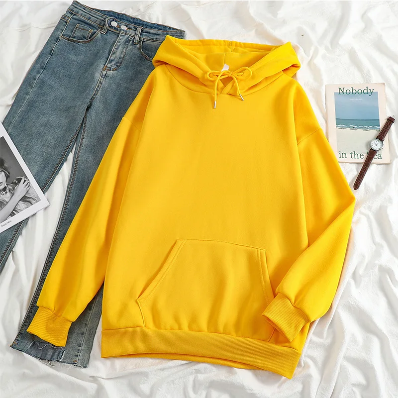 Толстовка женская с капюшоном, Повседневная однотонная кофта для па...