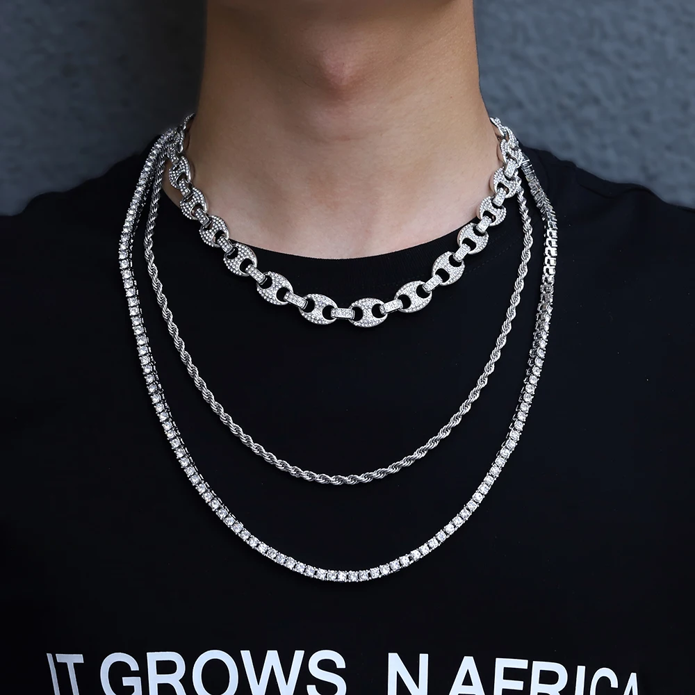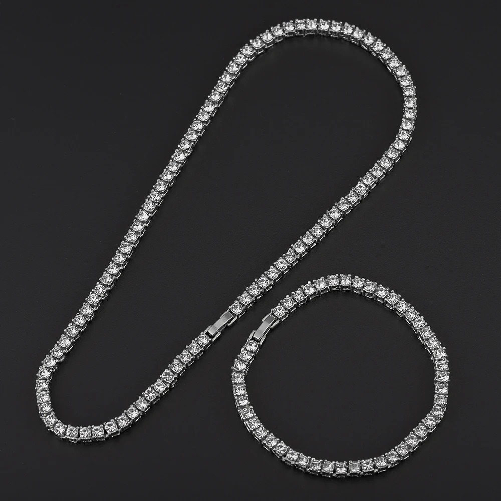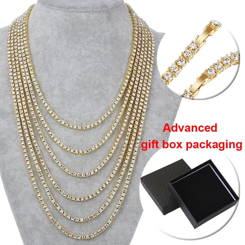 2021 популярная цепь в стиле хип-хоп для женщин, ожерелье золотого цвета со сверкающим покрытием, ожерелье для тенниса 4 мм, Модная бижутерия в стиле панк, Подарочная цепь для мужчин
