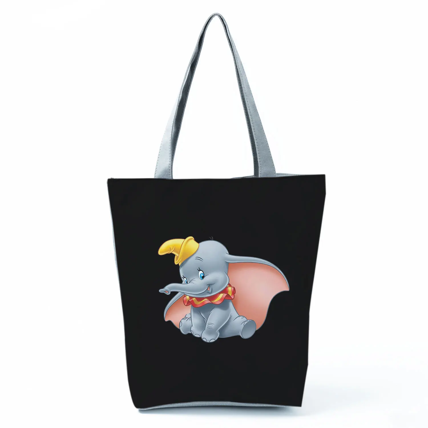 Дамбо Печатных Сумочка Disney слон высокое Ёмкость сумка черный пляжная сумка женская сумка на плечо, сумка для покупок с персонажем из мультфильма пользовательского образца