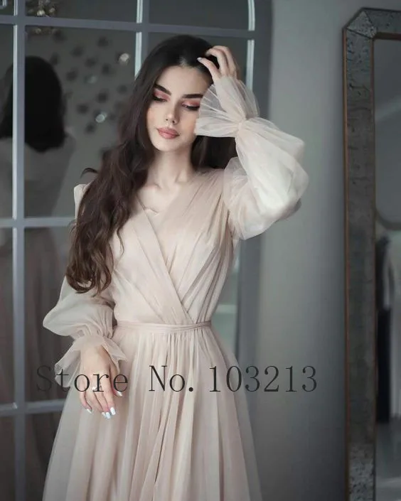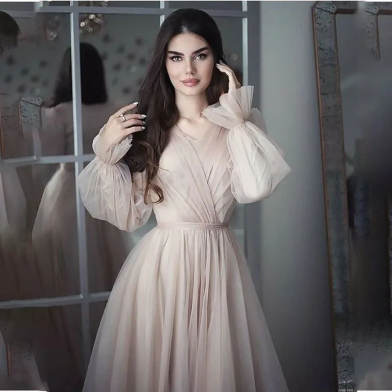 Элегантное Телесно-розовое искусственное Тюлевое платье с V-образным вырезом Длинные вечерние платья для женщин 2022 Новые платья невесты