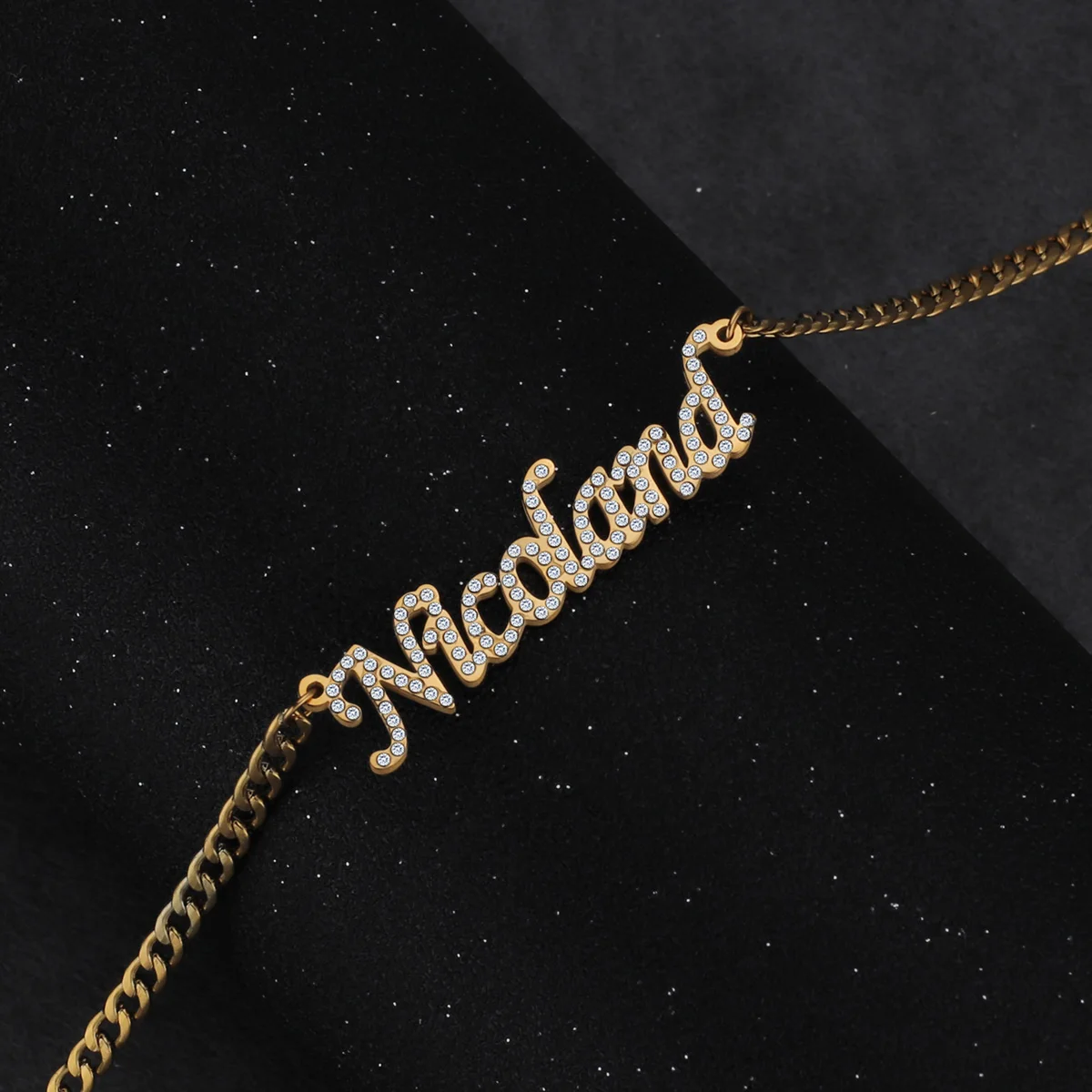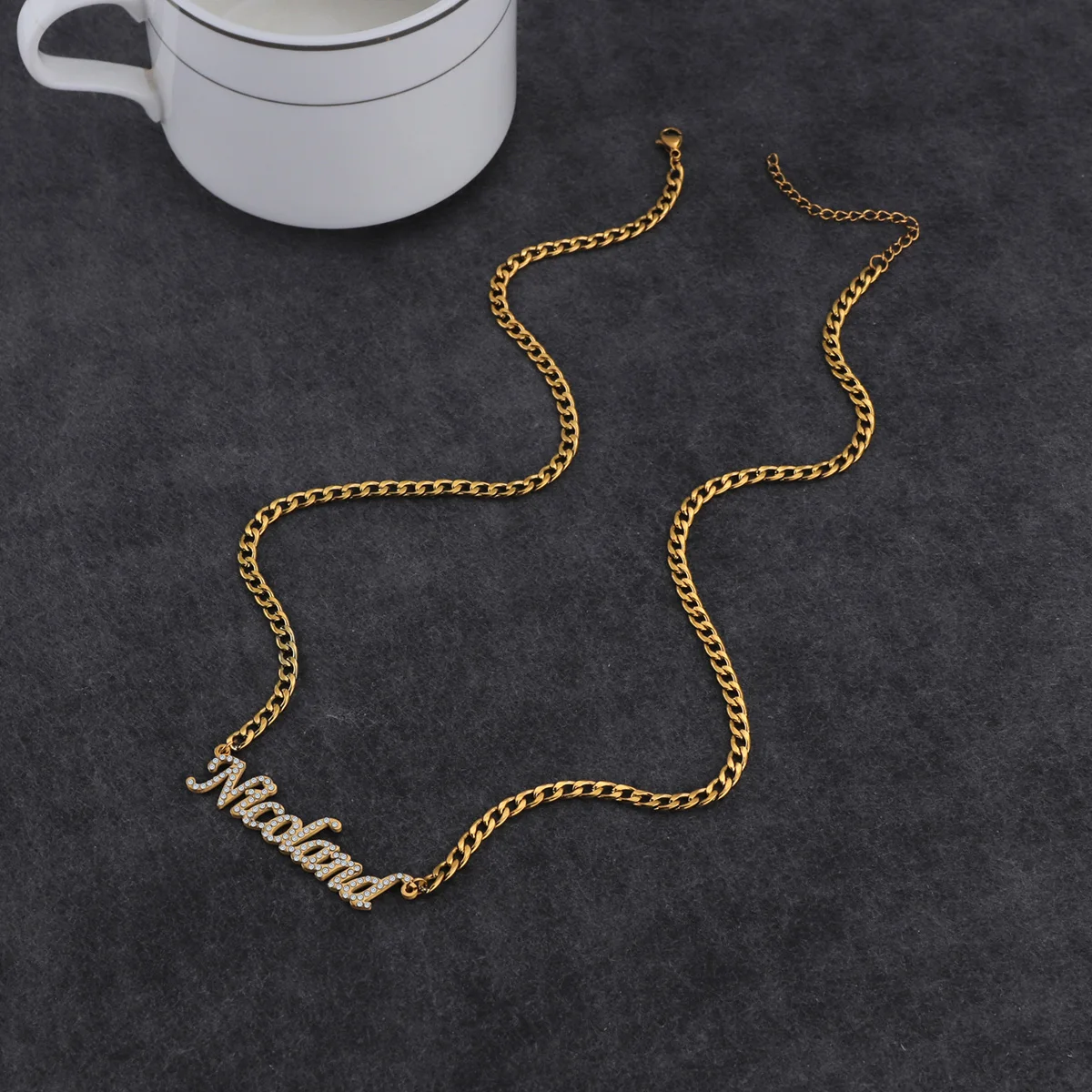 Ожерелья из нержавеющей стали с фианитами и надписью на заказ