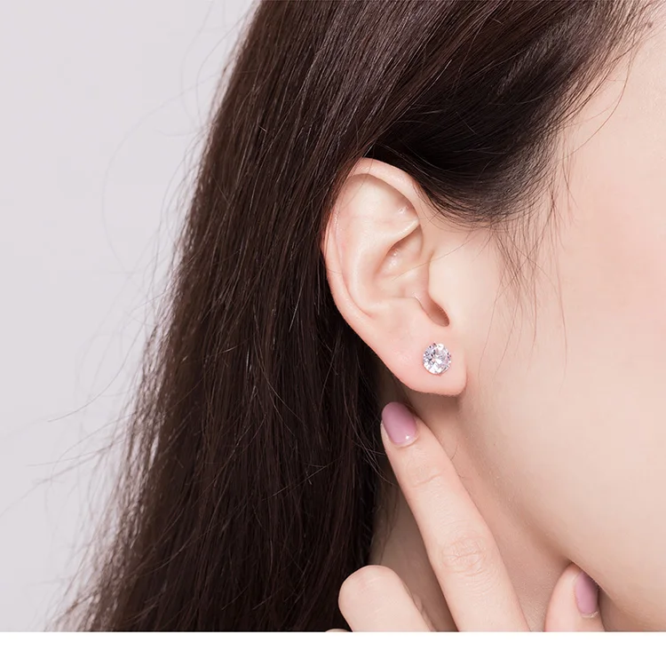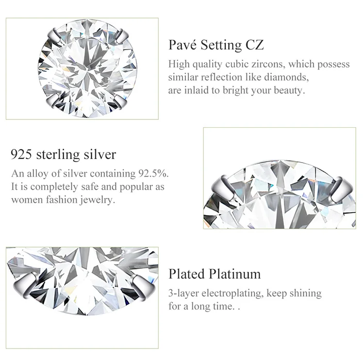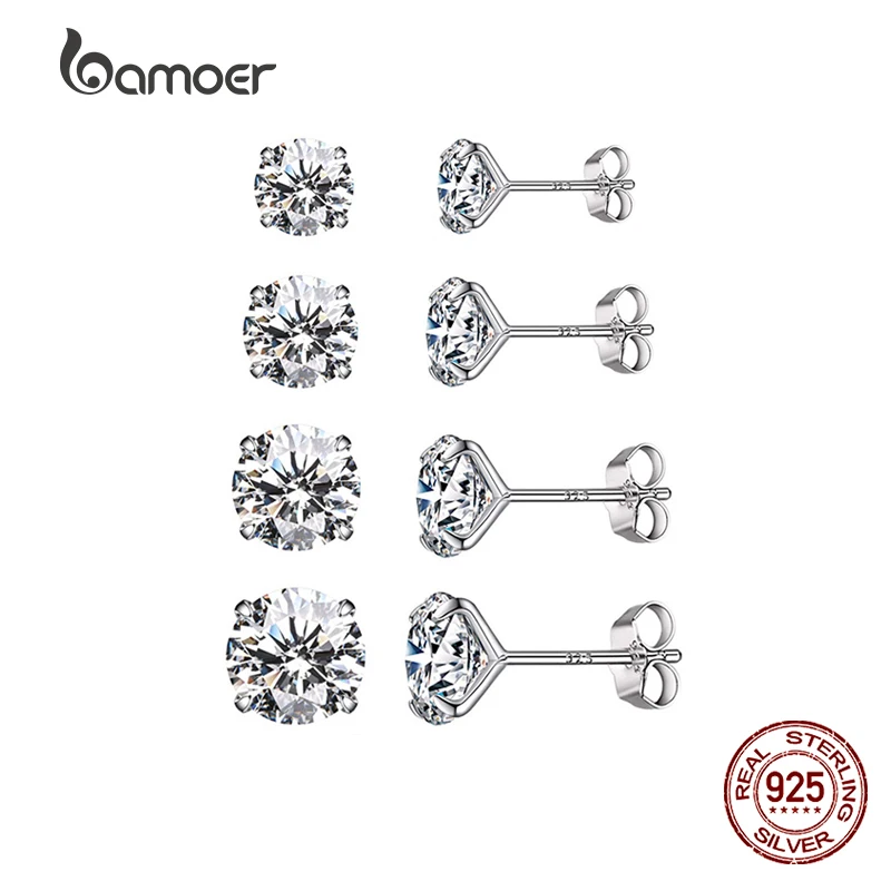 BAMOER CZ серьги-гвоздики 925 пробы серебро Платиновое Покрытие круглой формы кубического циркония гипоаллергенные серьги 4 мм 5 мм 6 мм 7 мм BSE166