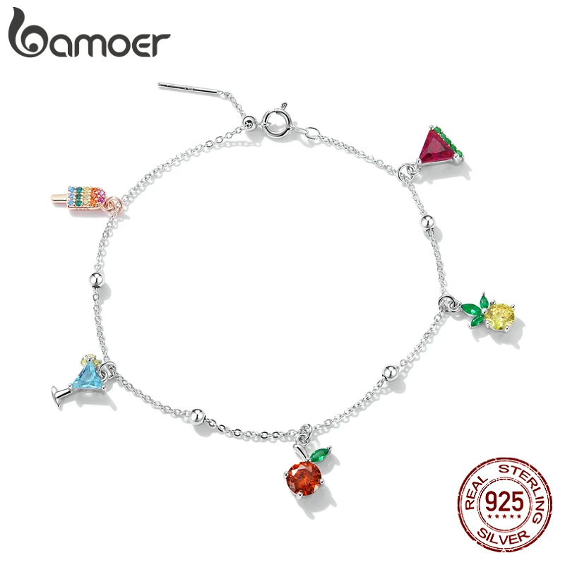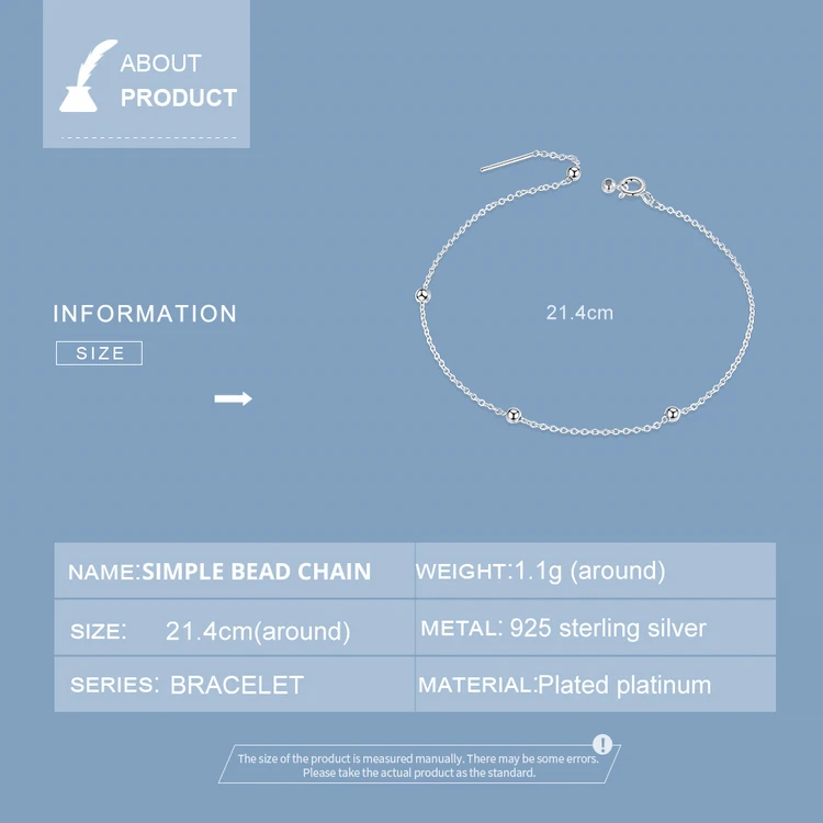 BAMOER серебрянный простой браслет-цепочка с бусинами 100% 925 пробы серебро регулируемый браслет для девочки Ювелирное Украшение с оригинальным дизайном: BSB061