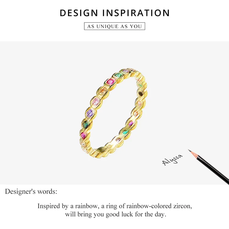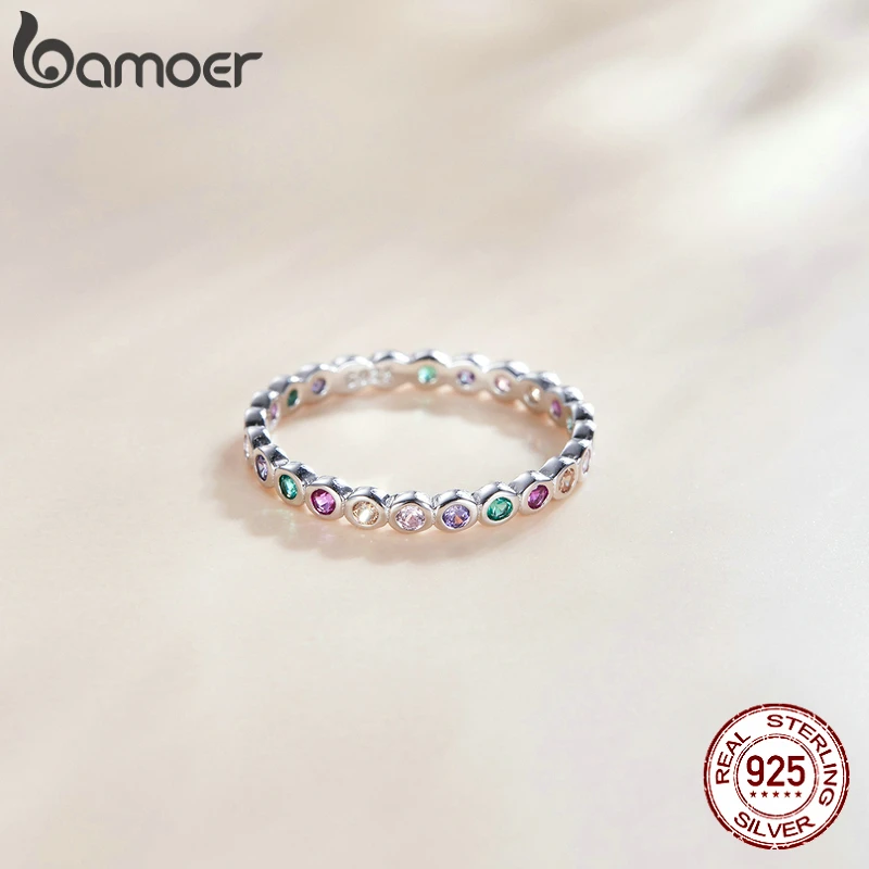 BAMOER 925 стерлингового серебра красочный Радужный циркон кольцо на палец для обручального кольца для женщин модные ослепительно CZ камень Anillos, ювелирное изделие, подарок