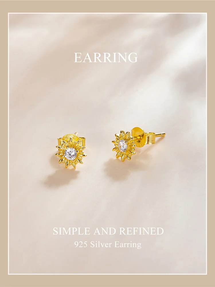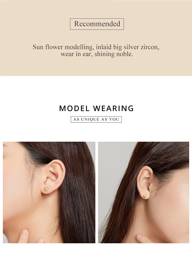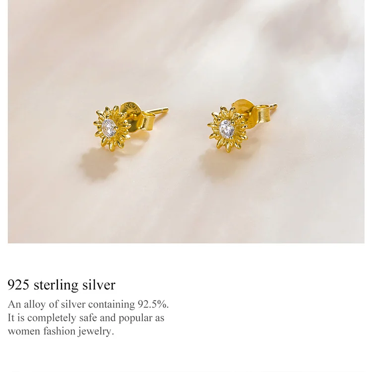 Bamoer Настоящее серебро 925 пробы Серьги-гвоздики Подсолнух для же...