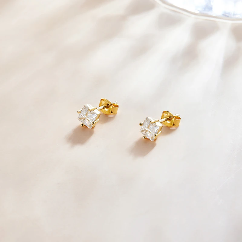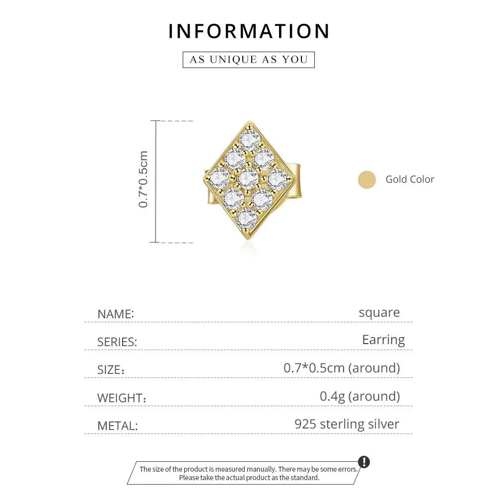 Bamoer Позолоченные квадратные серьги с застежкой из стерлингового ...