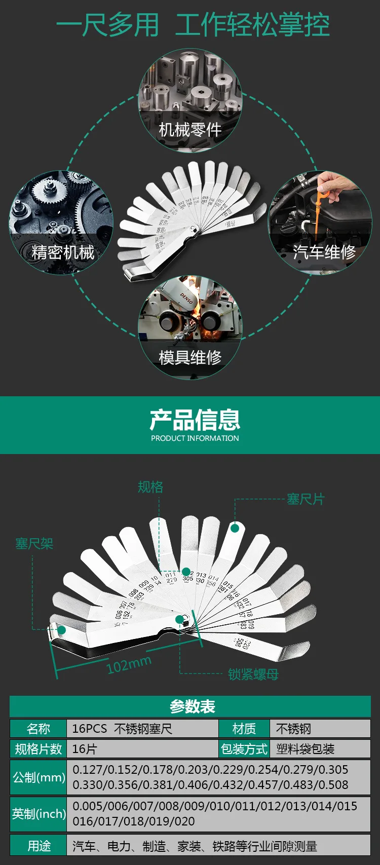 Ключ регулировочный винтовой для клапана двигателя мотоцикла инструмент для регулировки зазора 0,005-0,020 дюйма 16 штук щуп 0,127-0,508 мм
