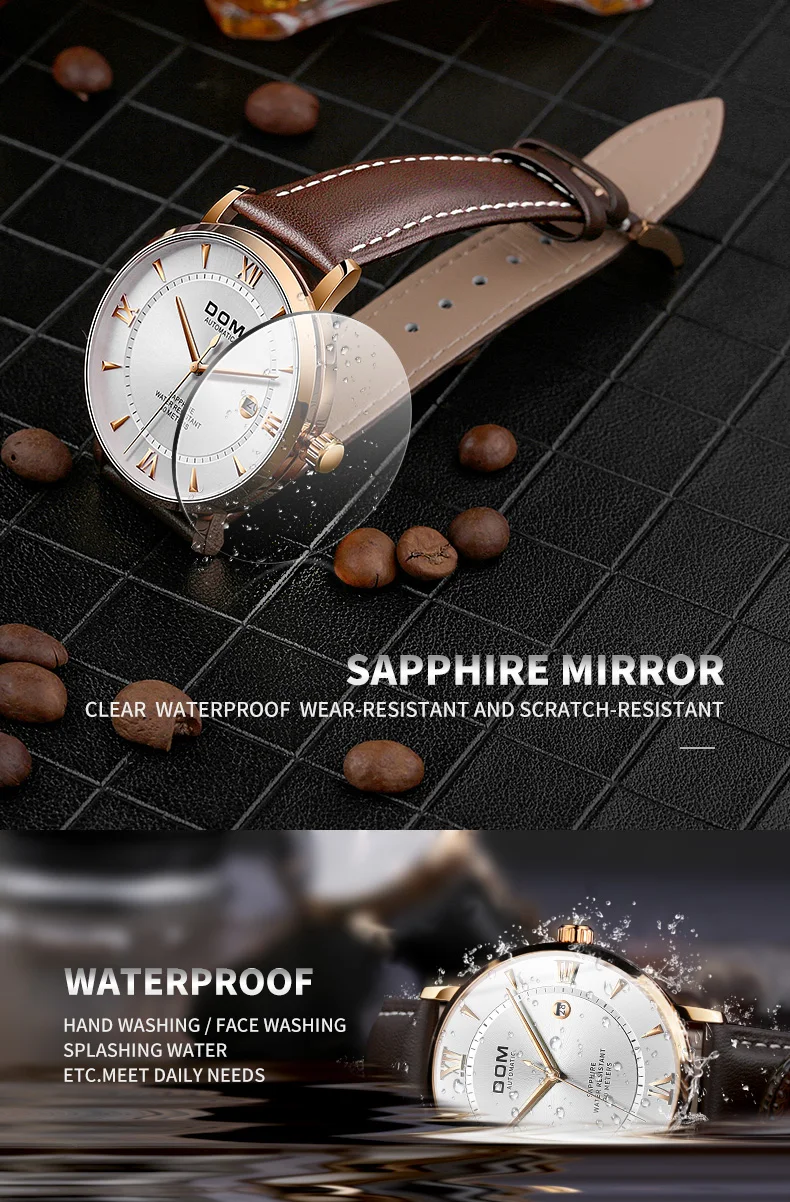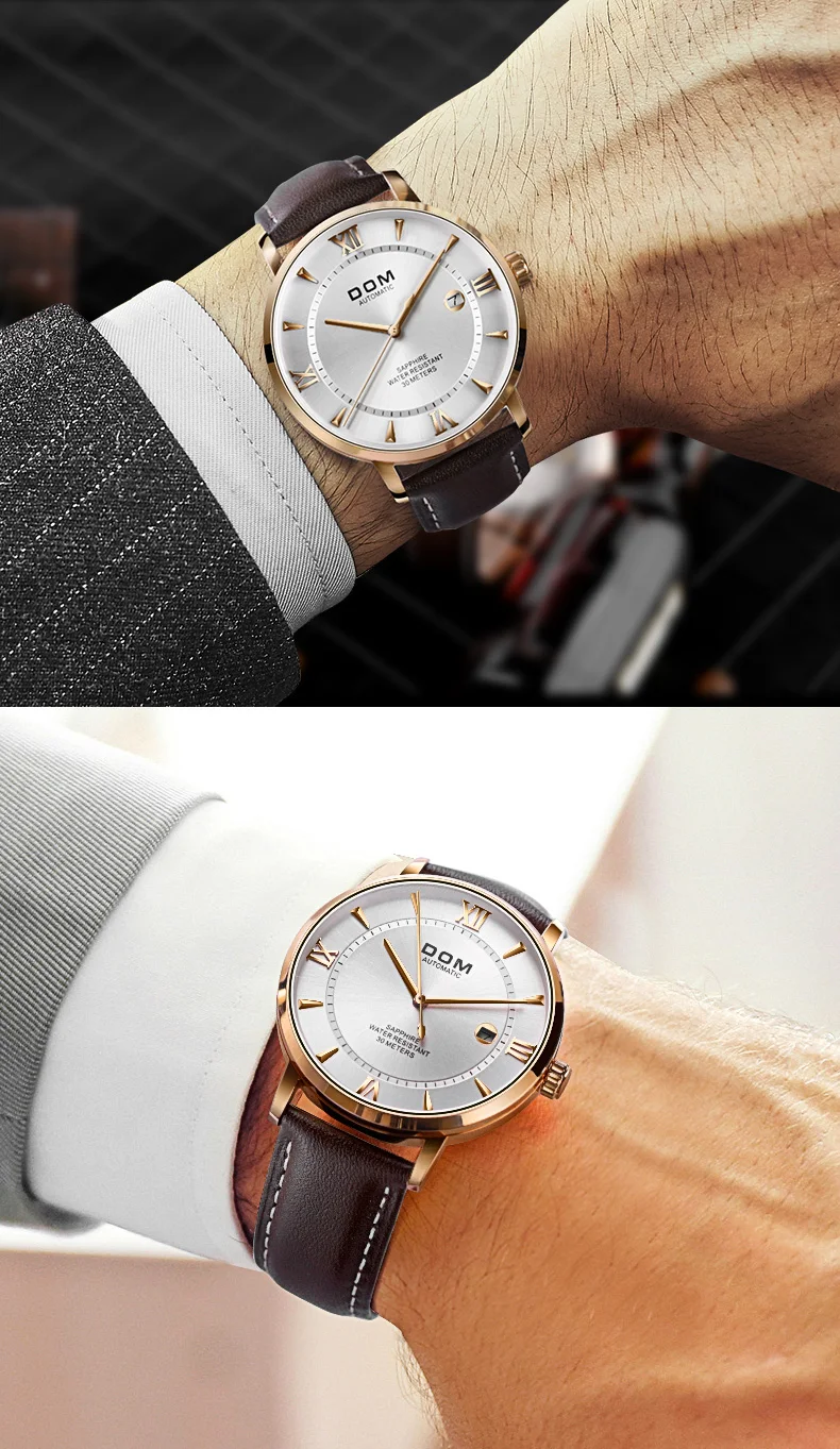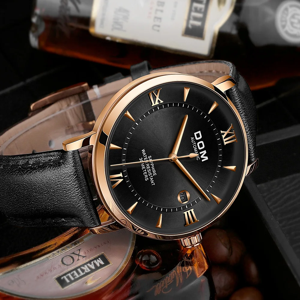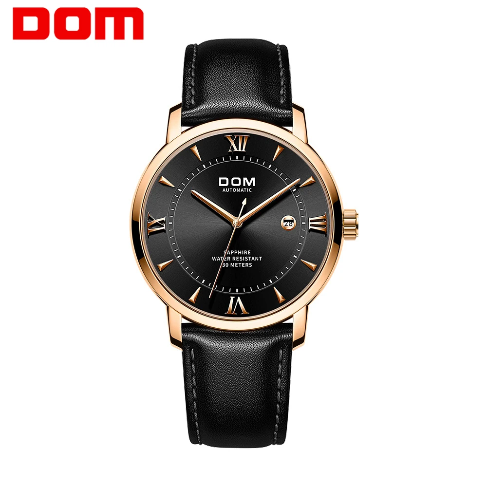 Роскошные мужские часы DOM, модные механические часы с кожаным ремешком, кварцевые мужские часы, повседневные деловые мужские наручные часы с датой