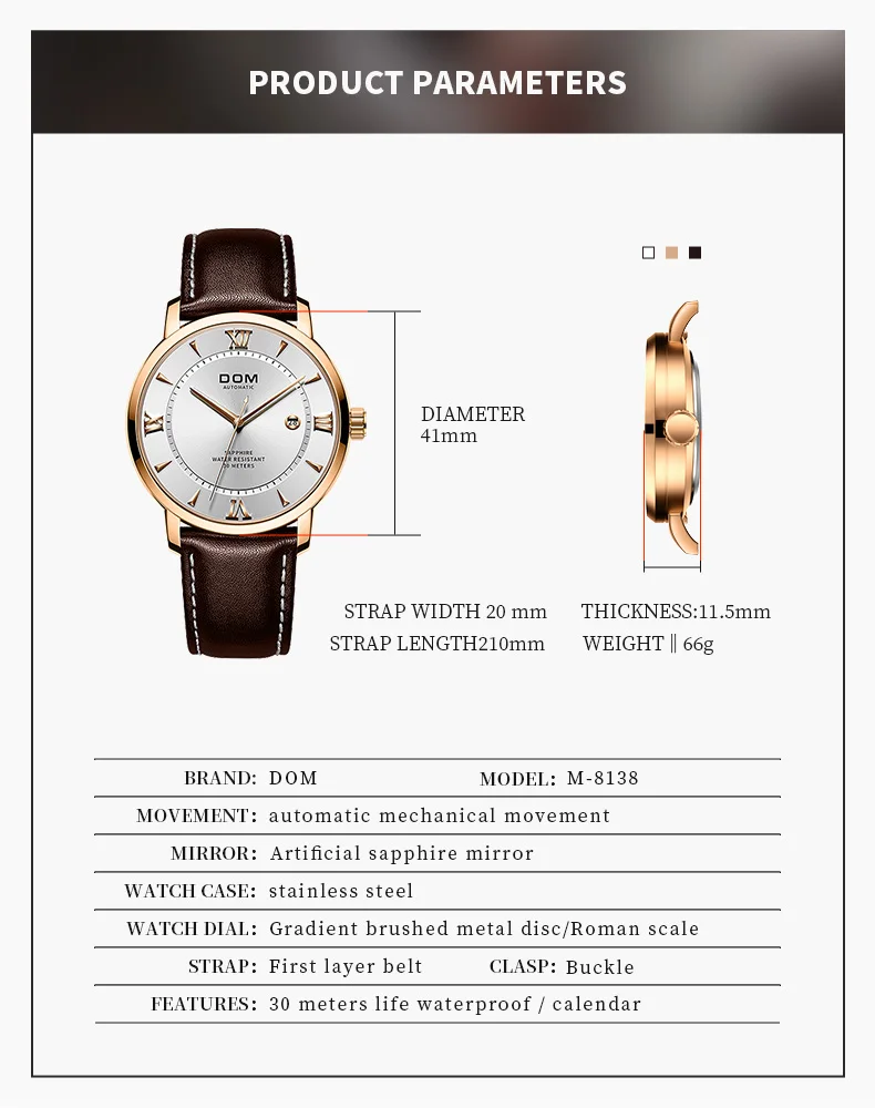Часы DOM Мужские механические, брендовые роскошные стильные модные ...