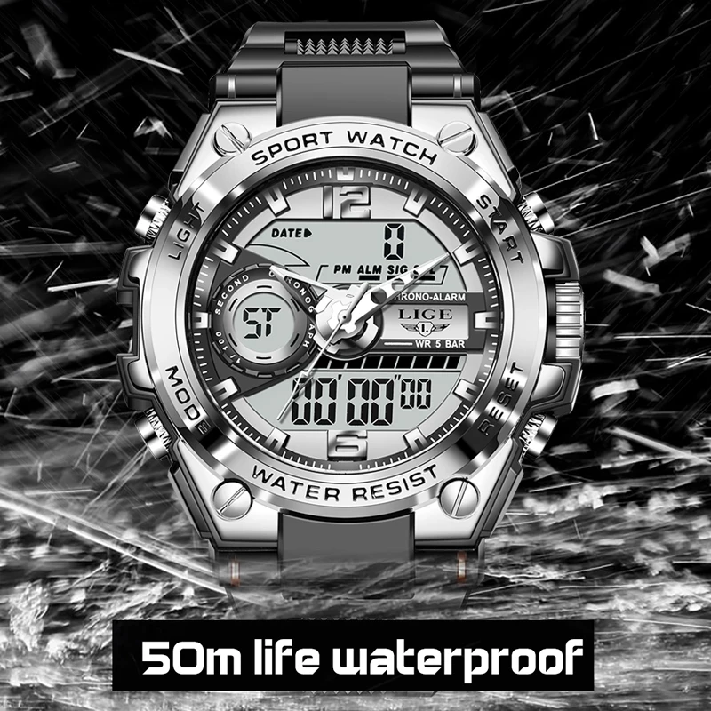 LIGE Цифровые мужские военные часы 50 м водонепроницаемые наручные часы светодиодный кварцевые часы спортивные часы мужские большие часы мужские Relogios Masculino