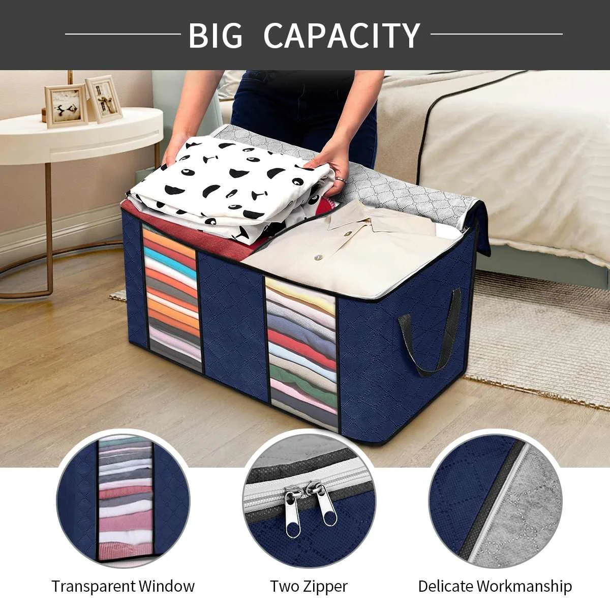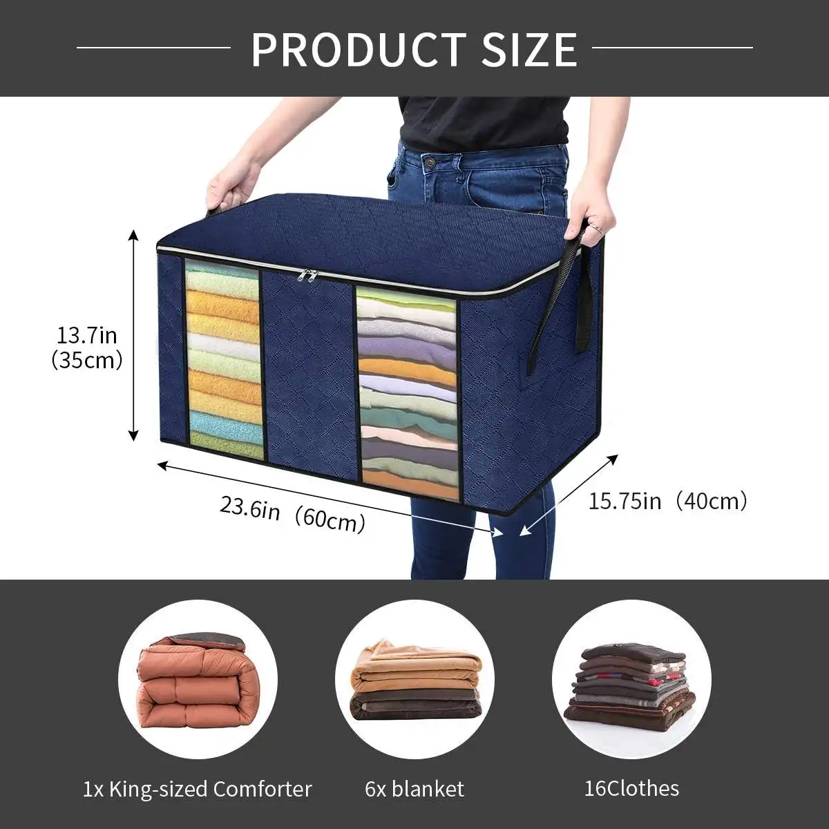 【Намного больший размер с 2 разделителями 】Сумка для хранения размером 60x43x35 см/23,6x16,9x13,7 дюйма, это самые большие сумки для хранения. Идеально подходит для хранения сезонных предметов, одежды и предметов домашнего обихода. Подходит для ваших одеял, одеял, подушек и другой детской одежды. Более компактная и обеспечивает дополнительную защиту ваших вещей.