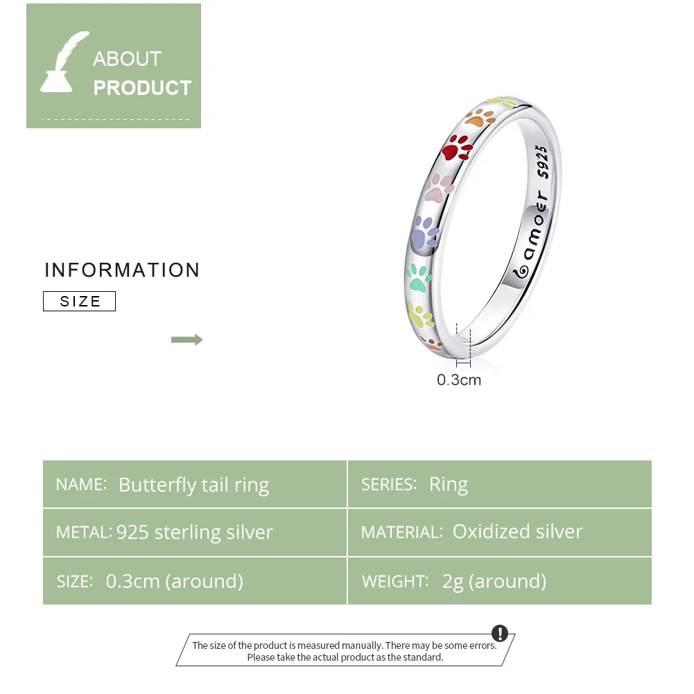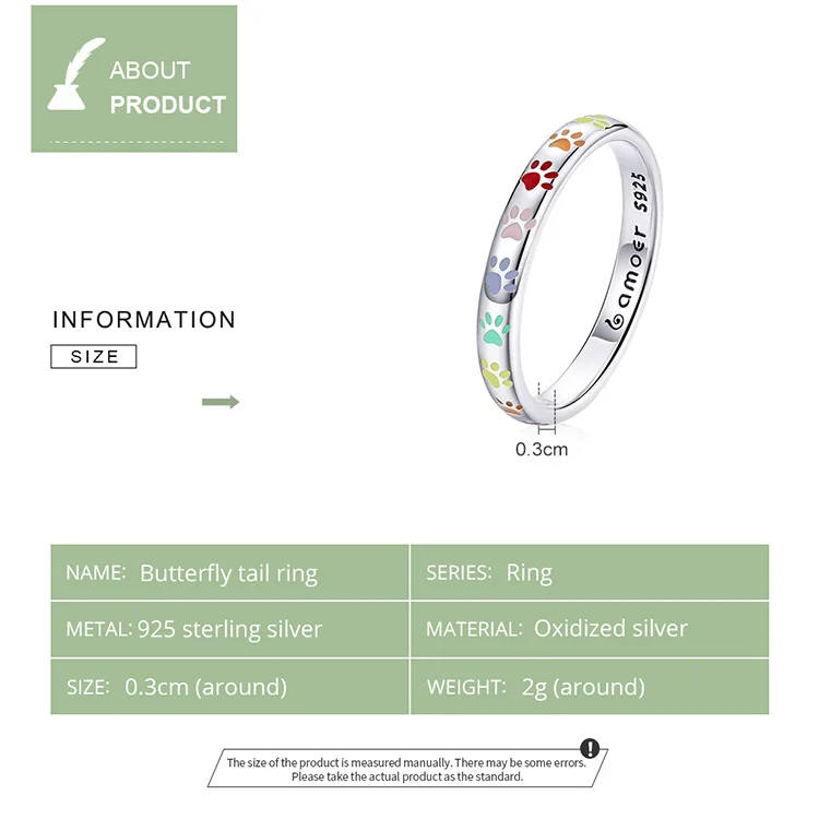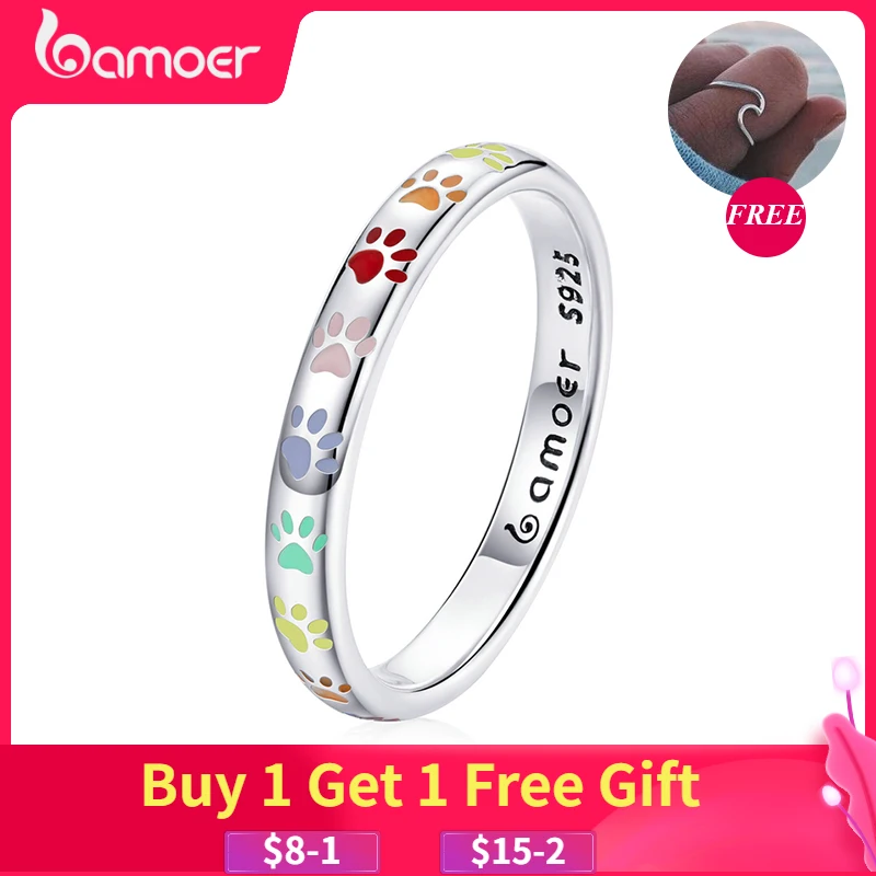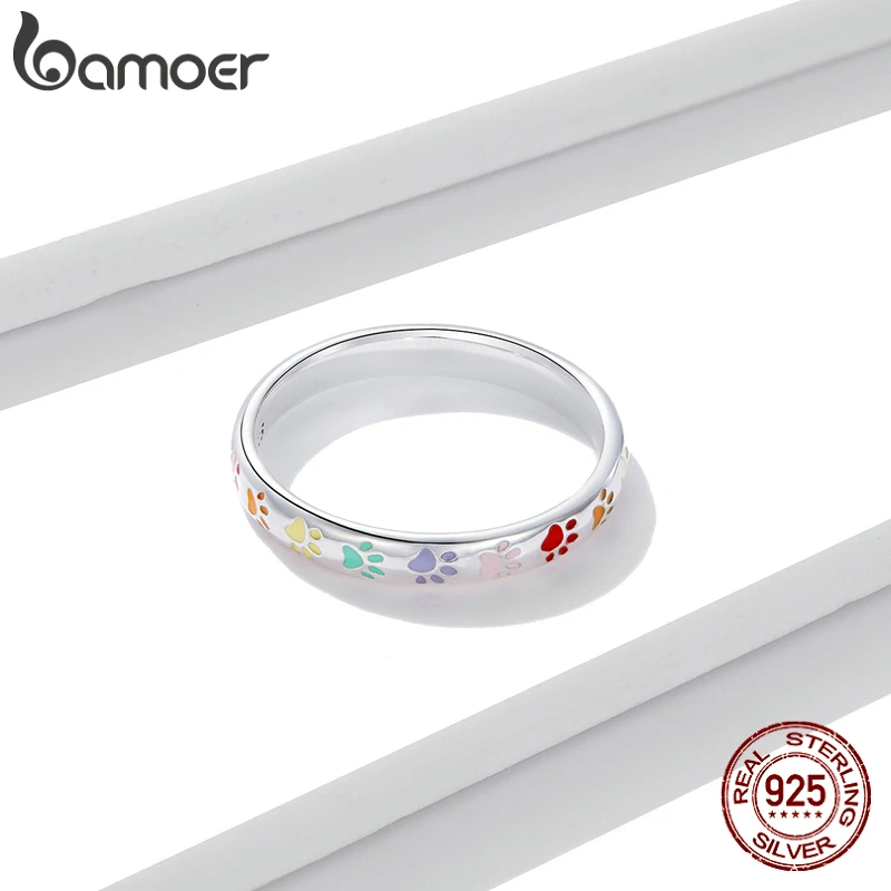 BAMOER серебро Цветной начинающим кольцо в виде лапы милый домашнее животное 925 кольца из стерлингового серебра ювелирные изделия для женщин, для женщин ювелирные BSR179