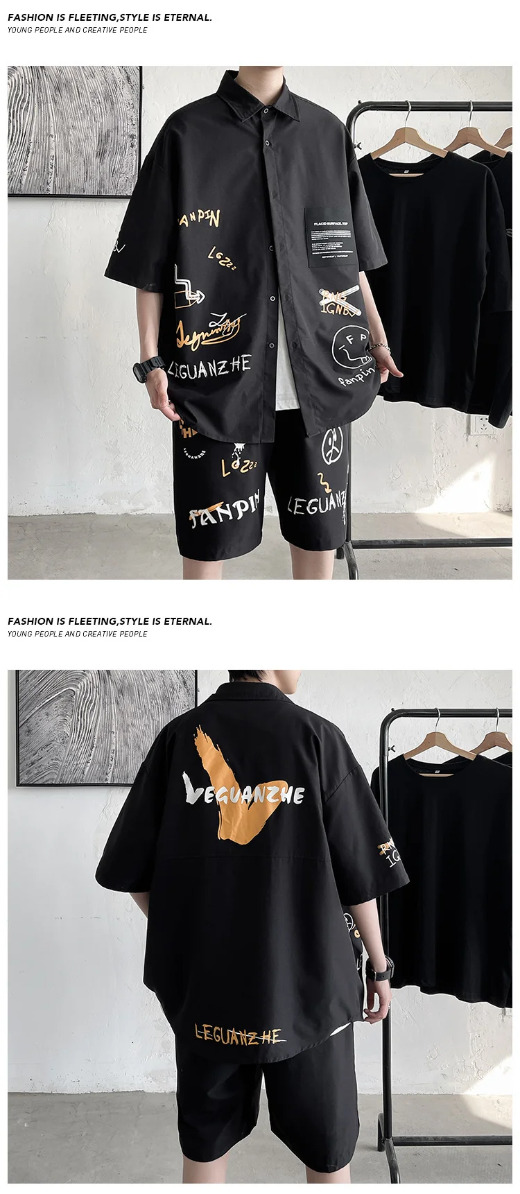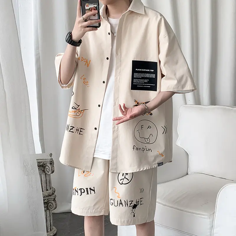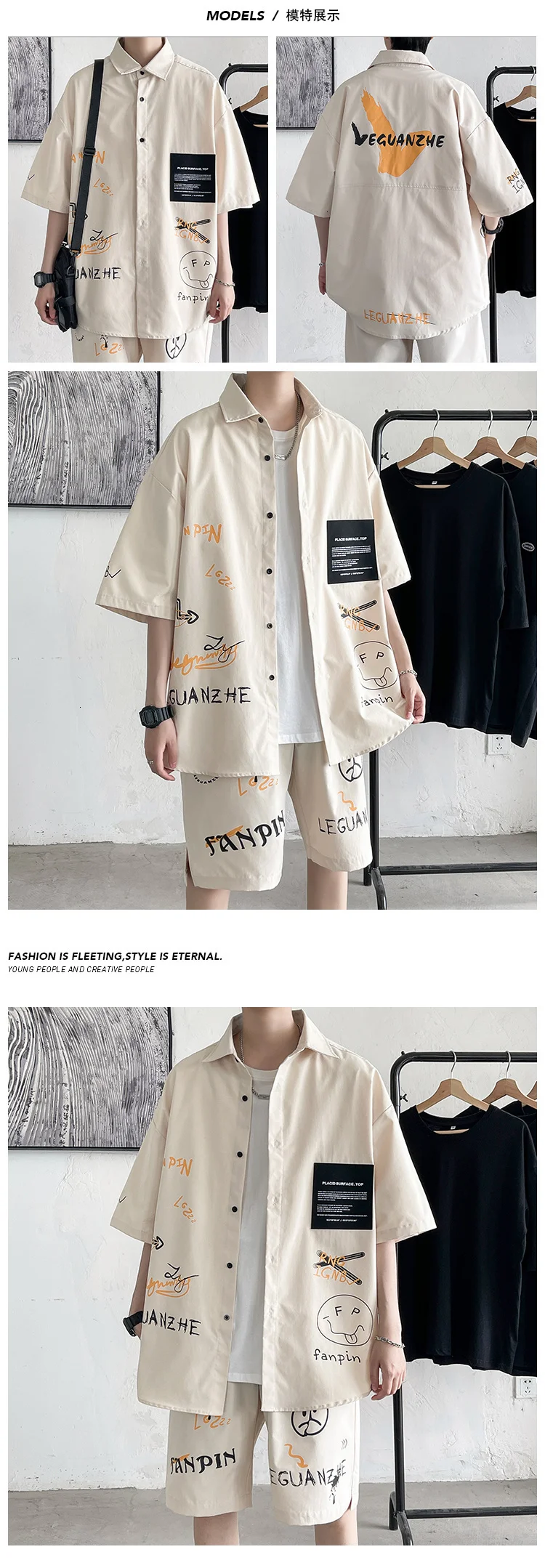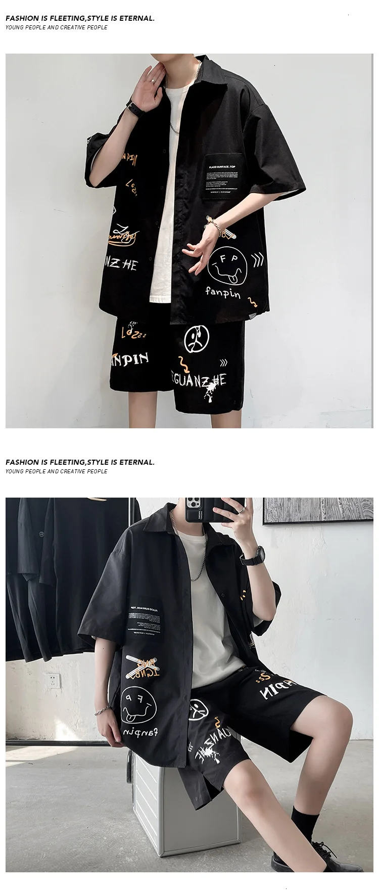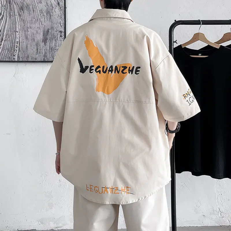 Мужская свободная рубашка HYBSKR, повседневный шикарный костюм с коротким рукавом, в Корейском стиле, свободные прямые шорты в стиле хип-хоп, лето 2021