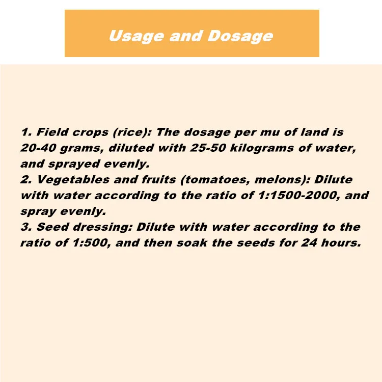 Обладает особым воздействием на погиб рисовых листьев, болезни бактериальных полос, рисовые взрывы, погиб в оболочке, болезни клещей, корневую гнили;