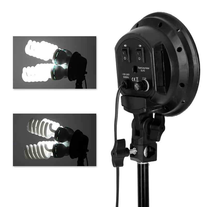 Это идеальный набор софтбоксов для освещения цифрового фото-видео. Четыре держателя лампы: подходит для 4 ламп, Цоколь E27 подходит для большинства осветительных приборов. Четыре вида адаптера питания: штепсельная вилка европейского стандарта, штепсельная вилка американского стандарта, штепсельная вилка британского стандарта, штепсельная вилка австралийского стандарта. Софтбокс 50x70: белая Складная мягкая ткань, высококачественные светоотражающие частицы. Безопасное и нетоксичное полиэфирное волокно, 4 гибких шатуна. Осветительная стойка: сложенная высота 27 дюймов (68 см), рабочая высота 79 дюймов (200 см) высокое качество, стабильная и прочная, простая установка и использование. Подарите 2 дополнительных предохранителя для подарка (чтобы предохранитель не горел из-за чрезмерного рабочего времени)