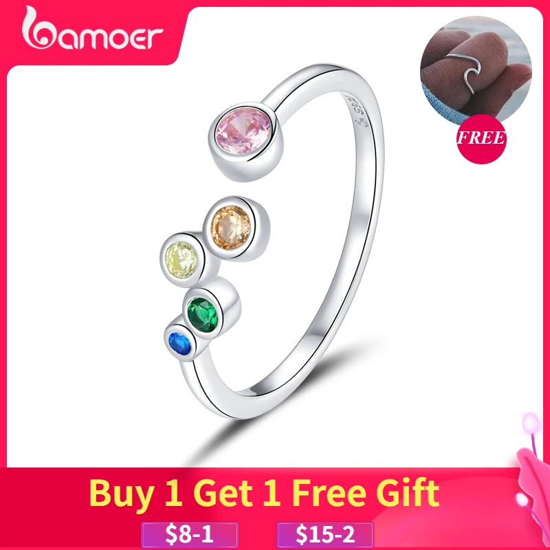 Серебряное кольцо bamoer радужного цвета, кольцо из стерлингового с...