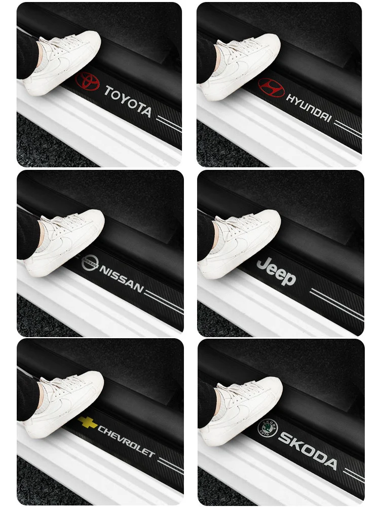 4 шт., защитные наклейки на пороги автомобиля, из углеродного волокна