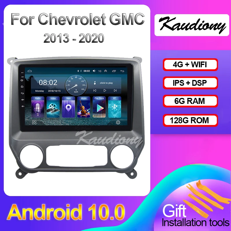 Автомобильный мультимедийный плеер Kaudiony, 10 дюймов, Android 10,0, 6 + 128 ГБ, для Chevrolet GMC Silverado, автомобильное радио, GPS-навигация, стерео 2013-2020