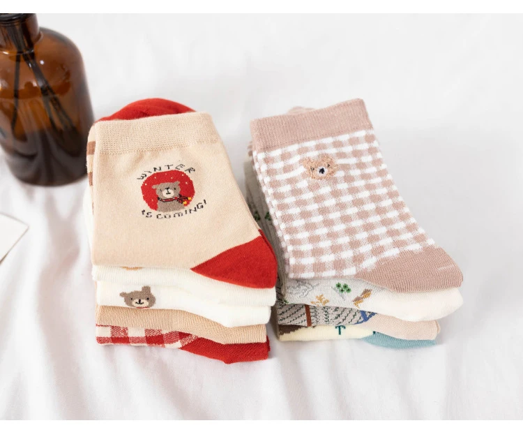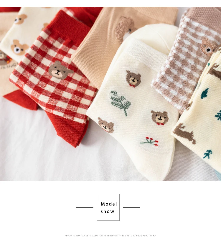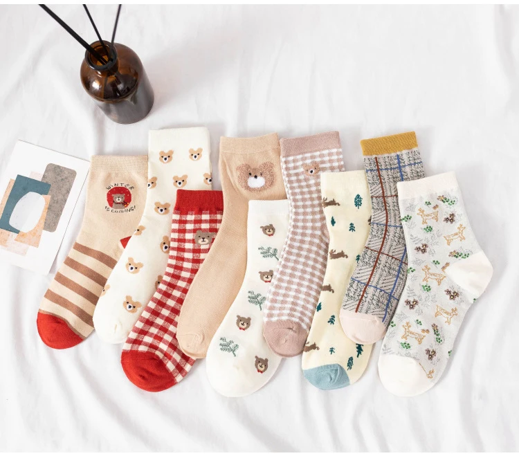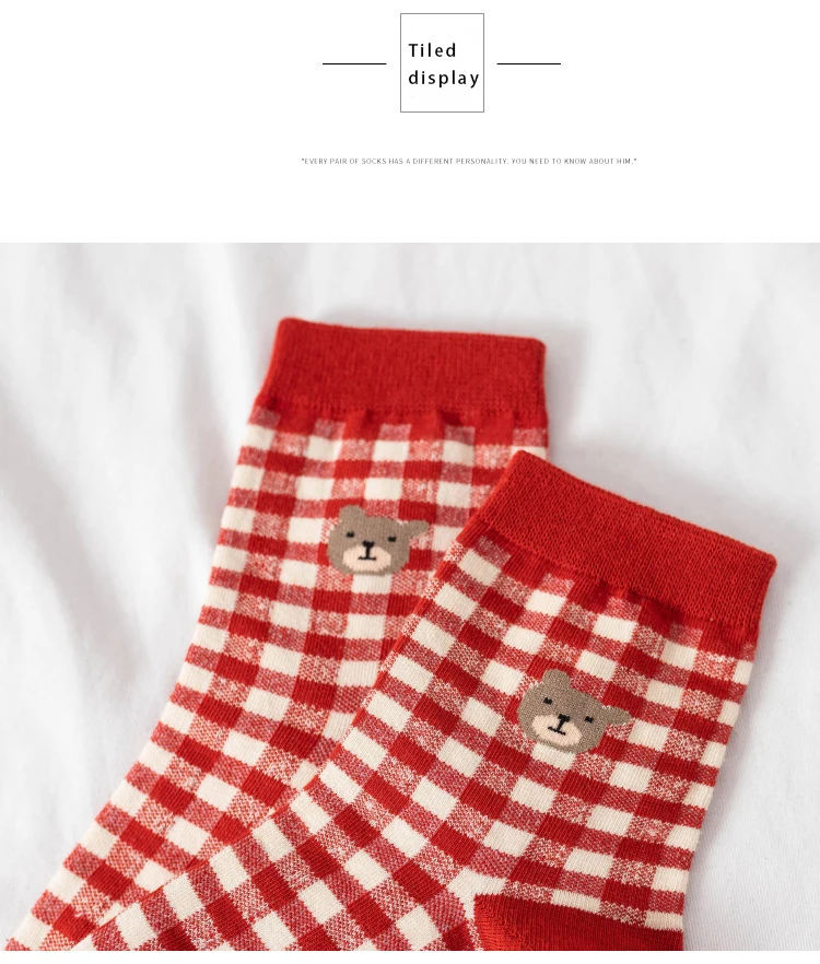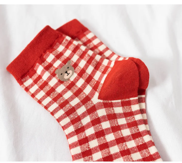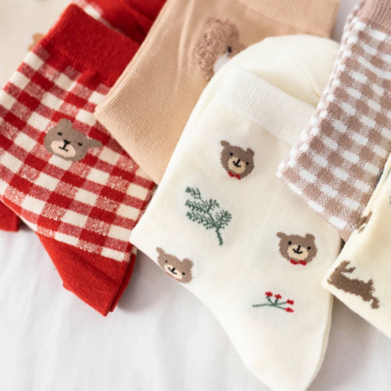 Носки с героями мультфильмов, милые носки в клетку с изображением медведя, meias, happy japan style, дизайнерские kawaii calcetines mujer, уличная одежда для женщин, skarpetki
