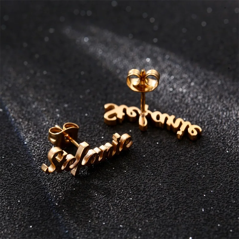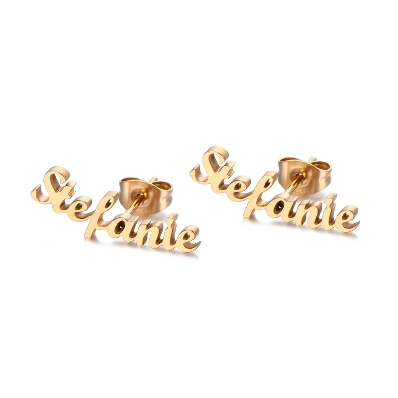 Серьги-гвоздики женские из нержавеющей стали, с золотыми буквами, на заказ, индивидуальные серьги