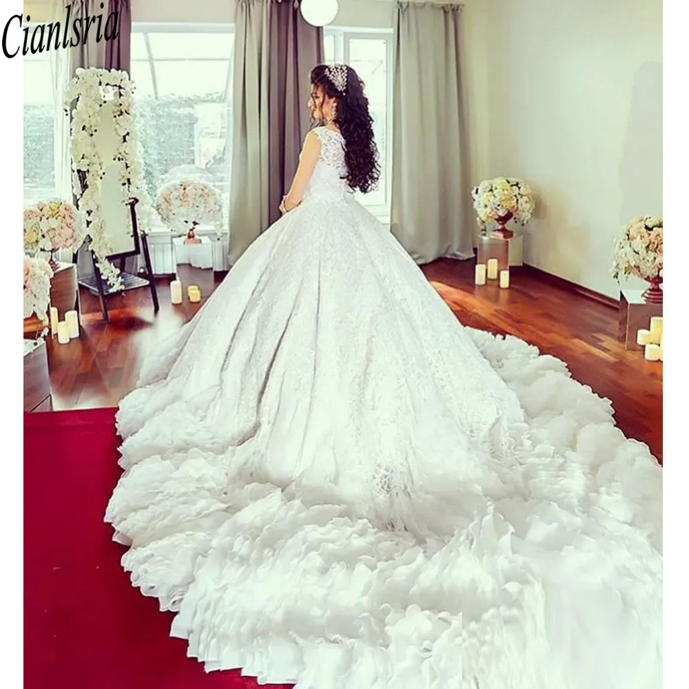 Бальное платье принцессы Дубая, свадебное платье es с V-образным вырезом, кружевными оборками, волнистым шлейфом, свадебные платья, женское свадебное платье