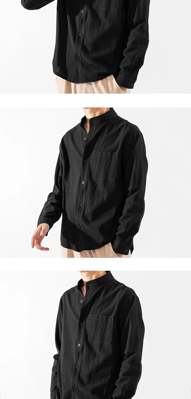 Рубашка мужская однотонная с воротником-стойкой, повседневная сороч...