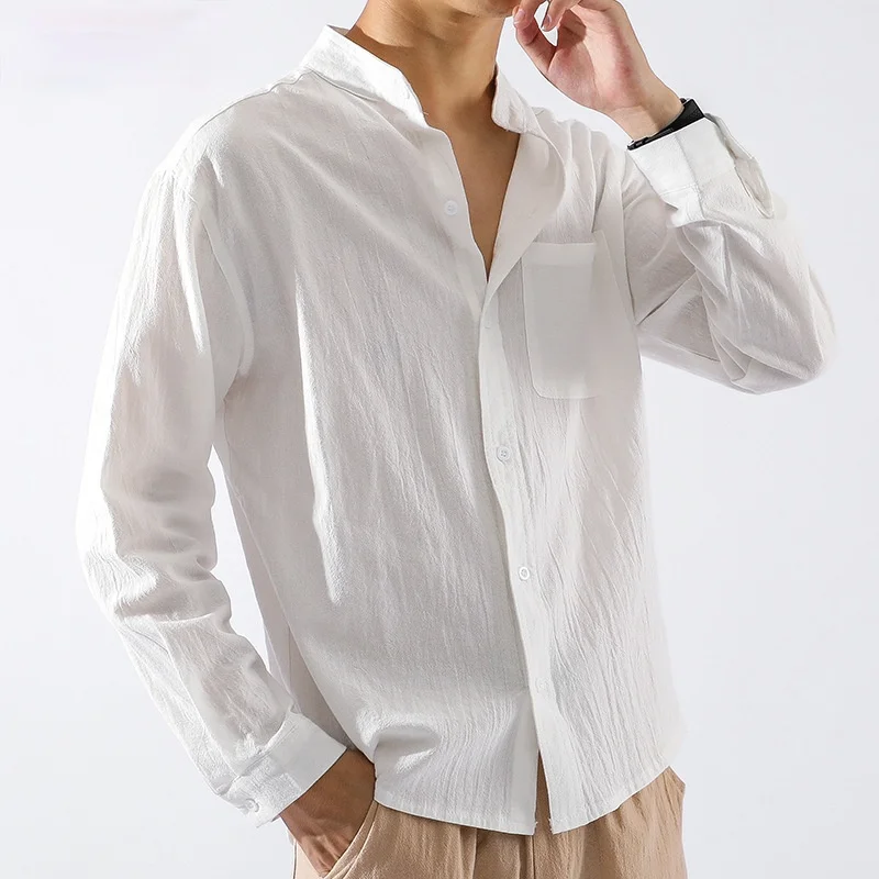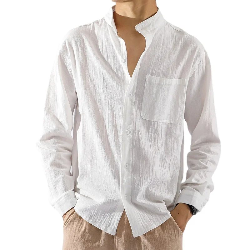 Рубашка мужская хлопково-Льняная свободного покроя, Стильная сорочк...