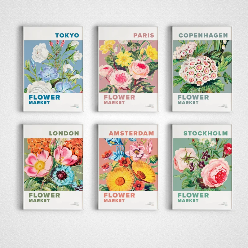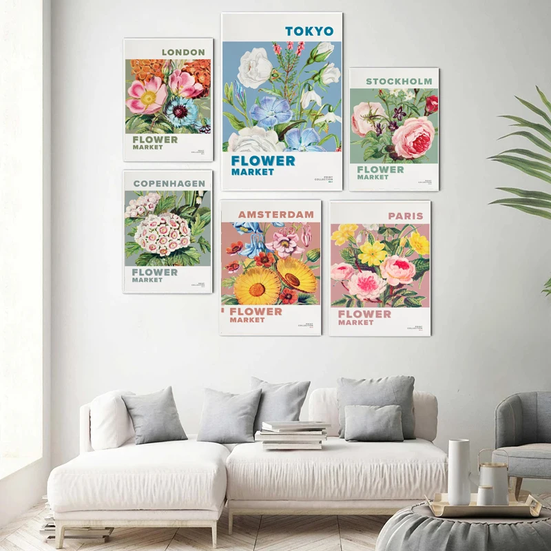 Цветочный рынок, ретро настенная Картина на холсте, Лондон, Токио, ...