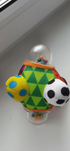 Не советую покупать. Игрушка пришла плохого качества. Косая, кривая. Швы неровные, нитки торчат, дырка. Ткань одной фактуры, не разной. Так что сенсорной эту игрушку не назовёшь. Ничего не крутится. Через мутный пластик в мутное зеркало ничего не видно. Повелась на скидку. Продавец общаться не захотел. Деньги не вернули.