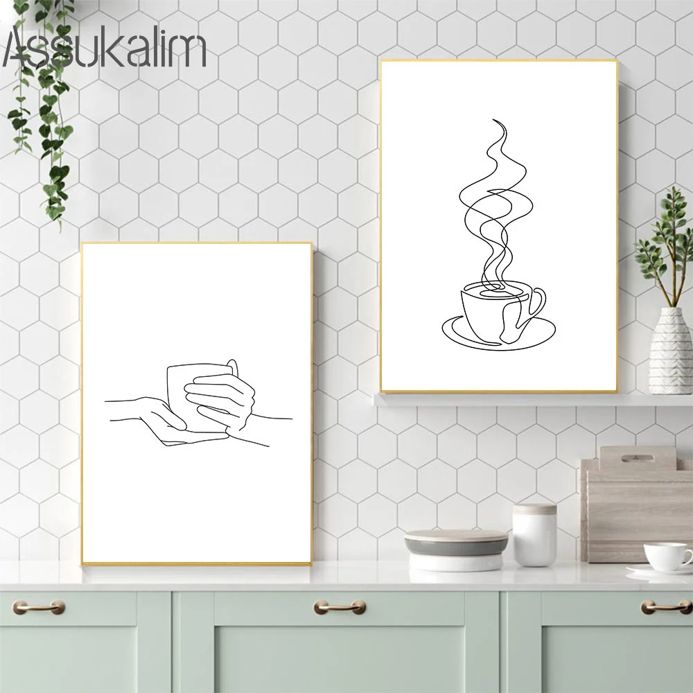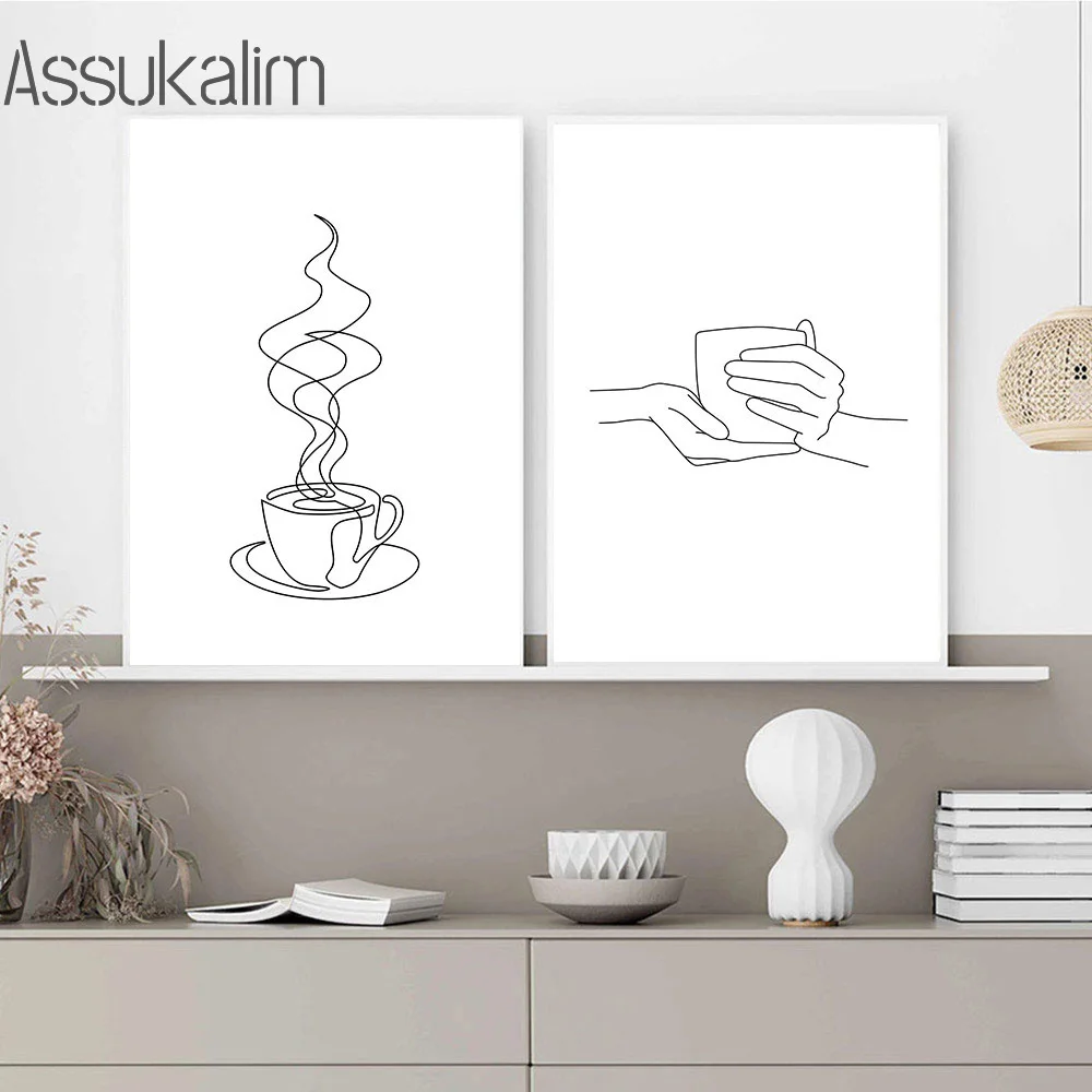 Абстрактные постеры в виде кофейной чашки, рисование стрелками, Картина на холсте, нордическая Минималистичная Настенная картина, картина для кухни, украшение для дома