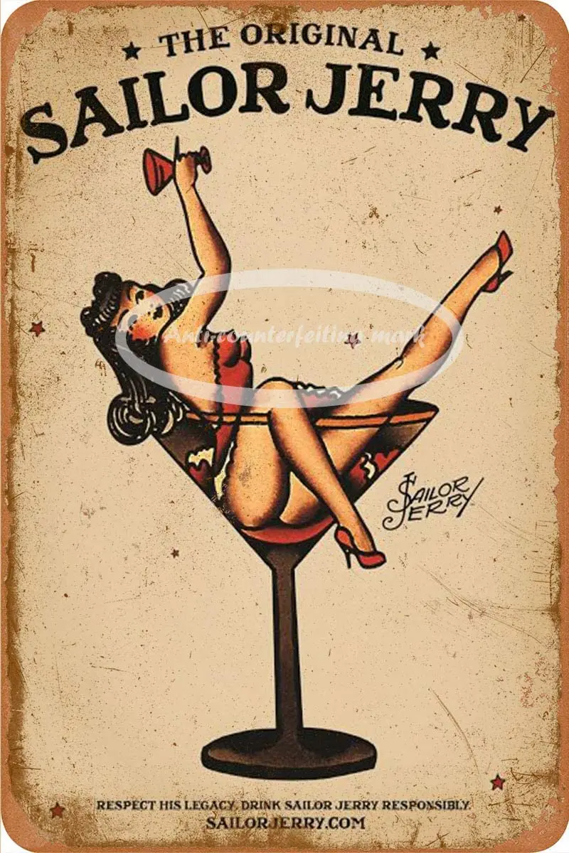 Плакат с ромом Сейлор Джерри, алюминиевый металлический знак, легкий прочный Классический плакат с зумом для магазина, бара, украшение для дома