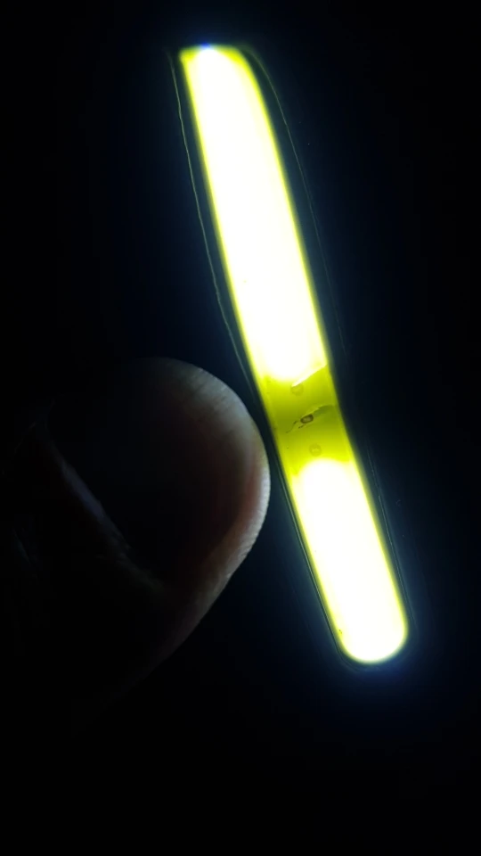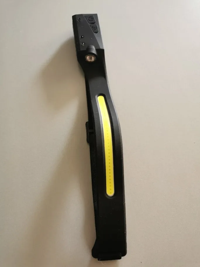 Доставка 19 дней. Упаковано в обычный пакет. Но сам фонарь гибкий, так что ломаться было нечему. Свет у COB хороший, но преимущественно вверх. Присутствует заметный ШИМ. Четыре варианта свечения: лента две степени яркости, фонарь, две степени яркости. Реализация сенсора простая, но работоспособная.