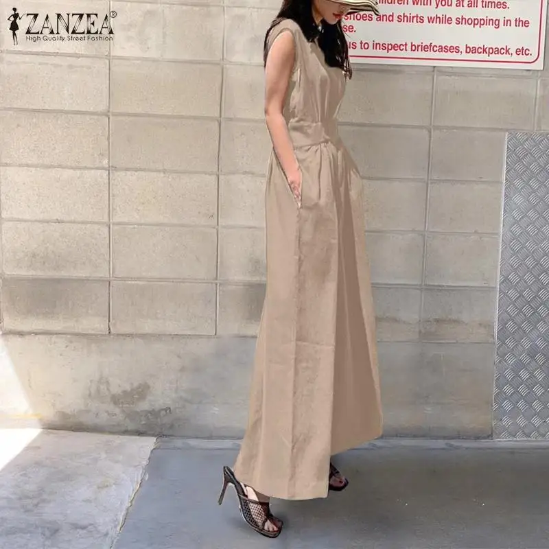 Элегантные однотонные комбинезоны, женские летние комбинезоны ZANZEA без рукавов, женские Комбинезоны на молнии, панталоны