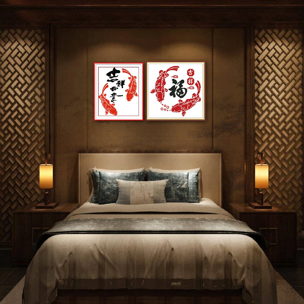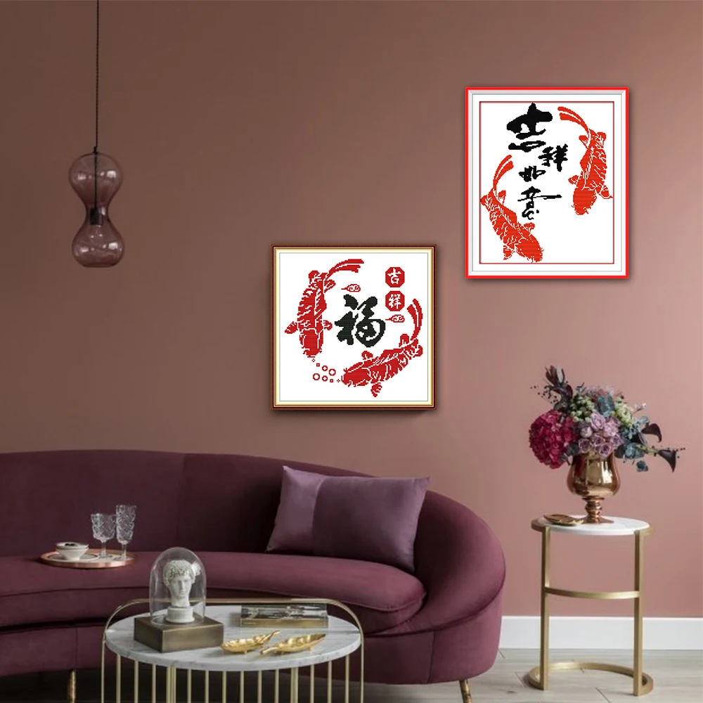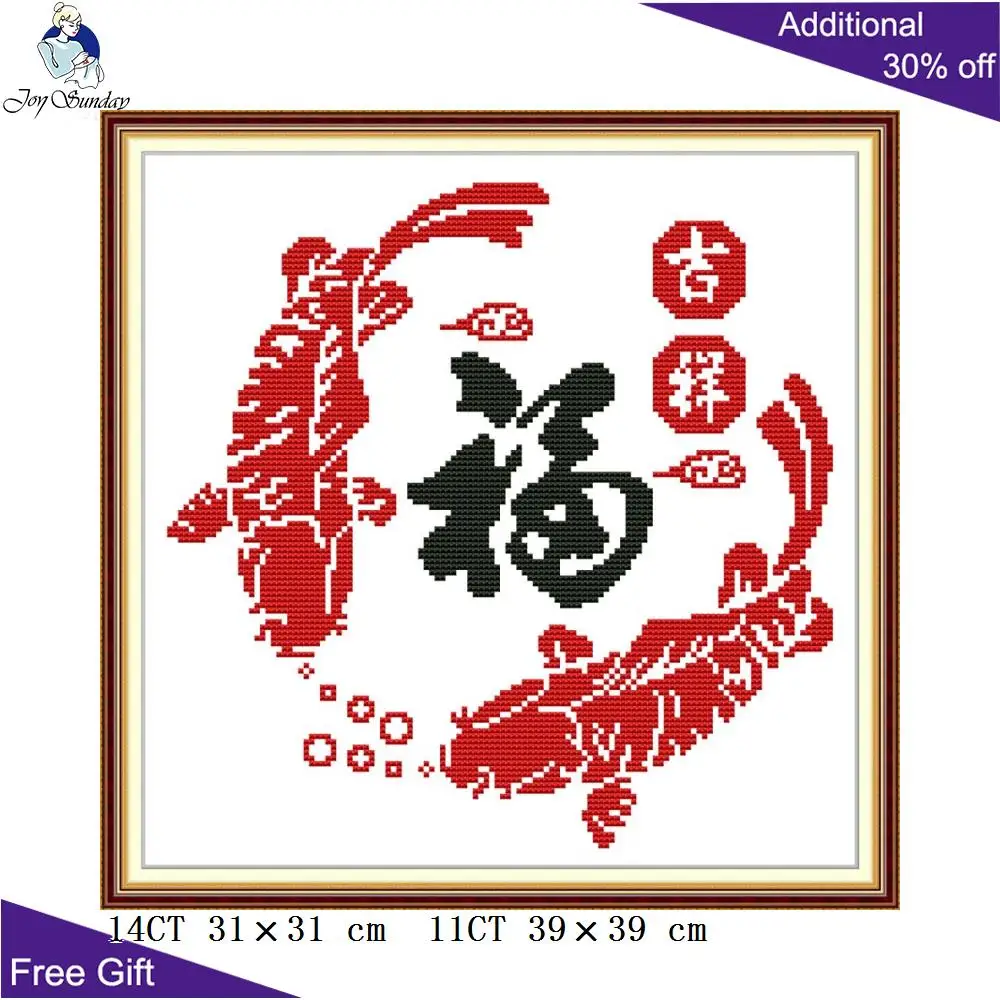 Набор для вышивки крестиком с китайскими изображениями рыб и надписью Joy Sunday Good Fortune и пожеланиями благословения Z455(4) Z682