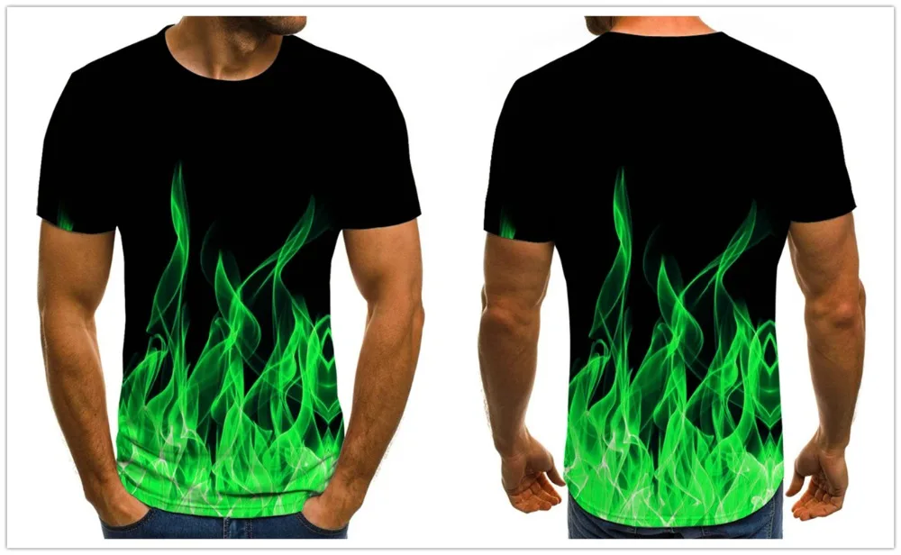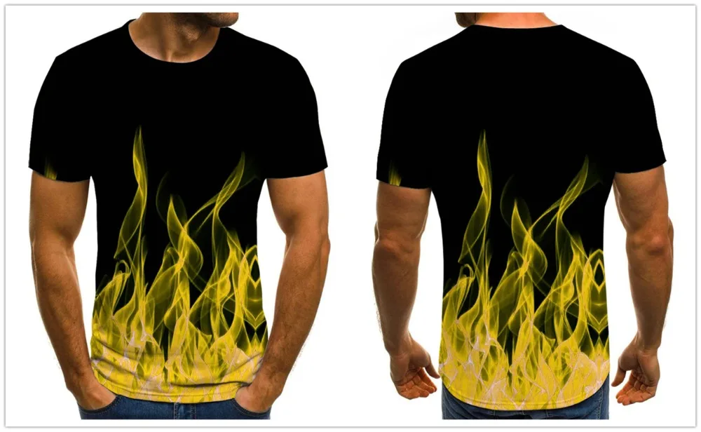Мужская летняя футболка, новинка, футболка с 3D-принтом пламени, Му...