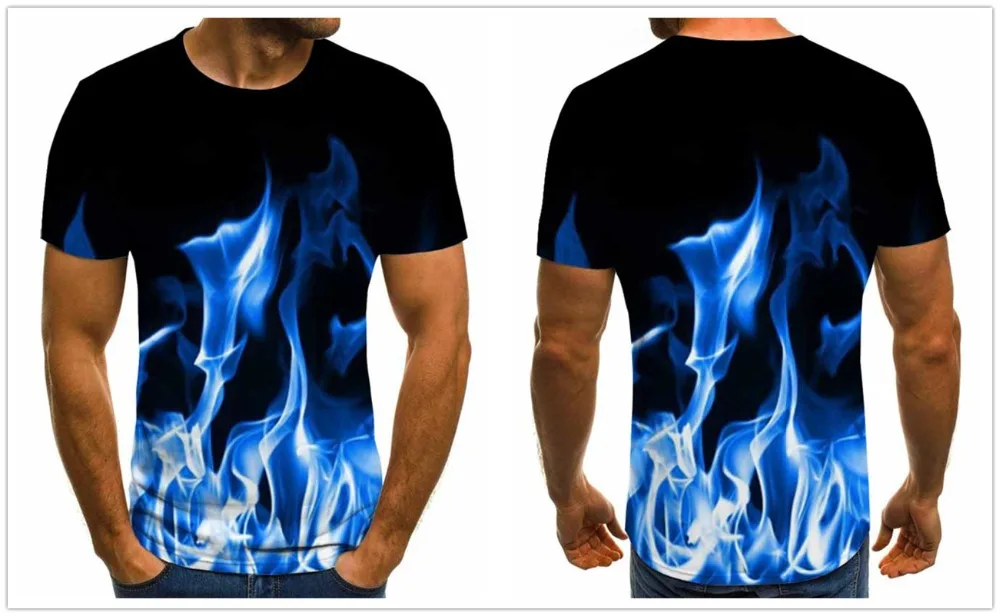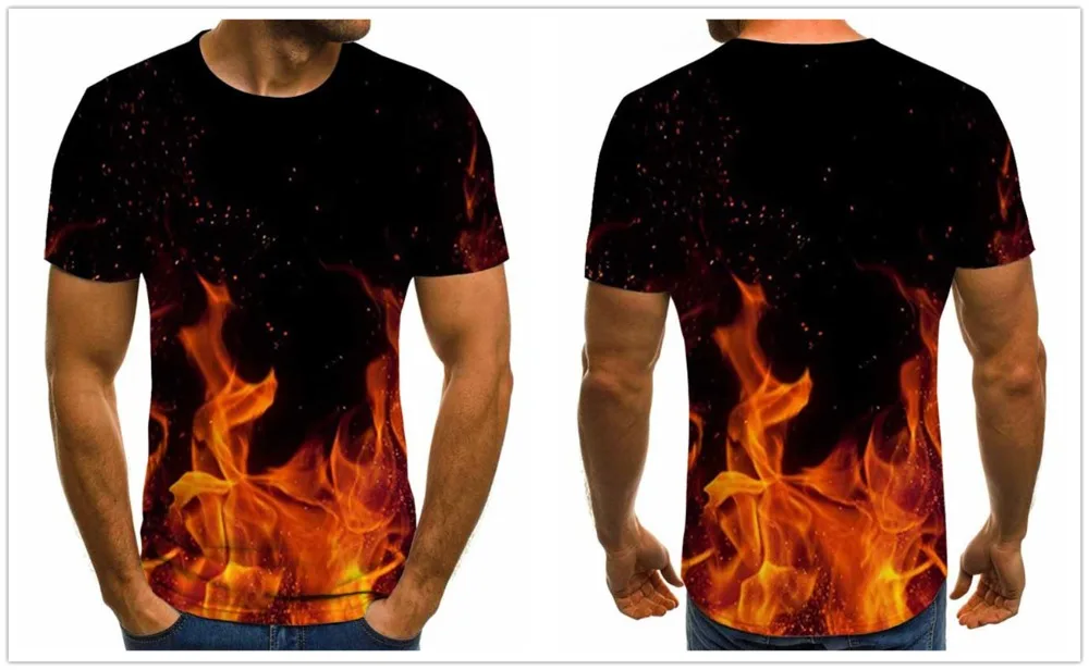 Новинка 2020, футболка с рисунком пламени, Мужская футболка с 3D пр...