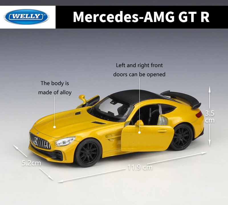 WELLY, литый под давлением в масштабе 1:36 симулятор Mercedes-AMG GT R, спортивный автомобиль, модель автомобиля из металлического сплава, игрушечный автомобиль, коллекция детских подарков
