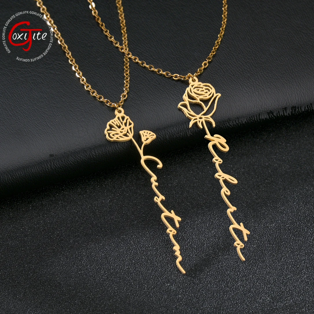 Goxijite изготовленное на заказ ожерелье с именем цветка Подвеска из нержавеющей стали именная розовая табличка Чокер Ожерелье для любимых ювелирные изделия подарок