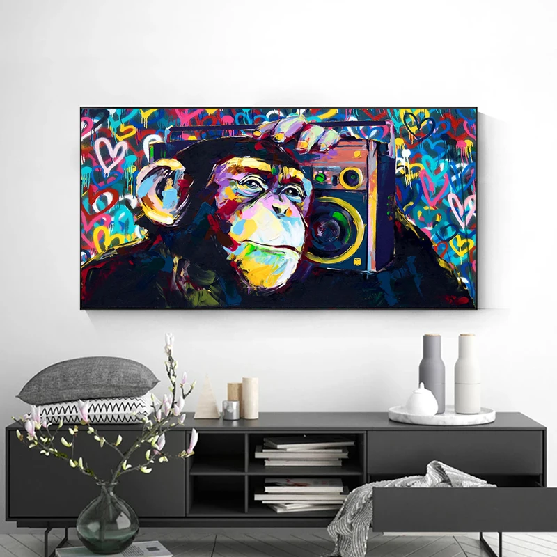 Картина на холсте с изображением обезьяны, слушащей музыку, плакаты и принты, Настенная картина для украшения гостиной, Куадрос